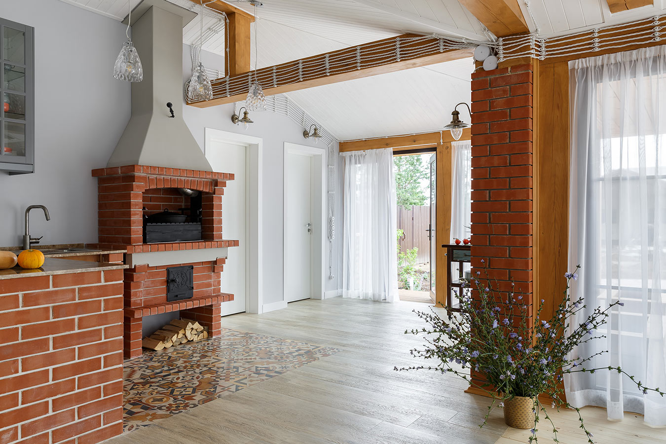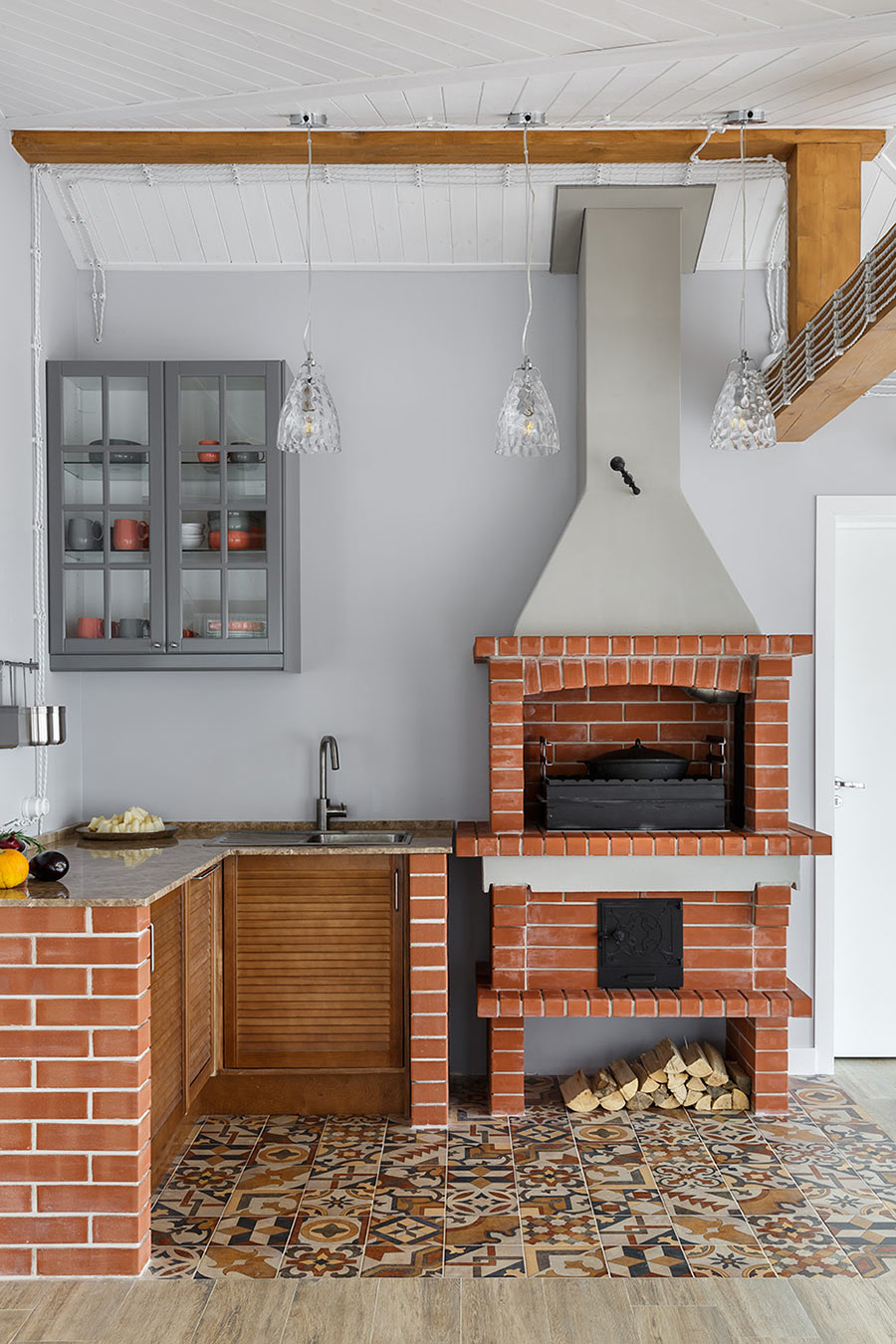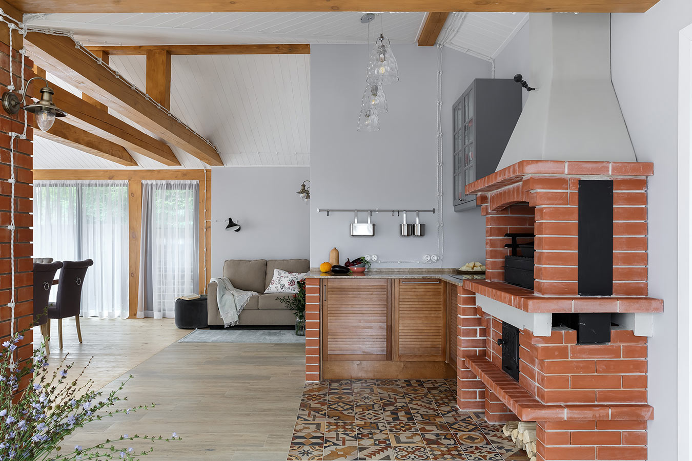 Гостевой дом проектировался для зрелой семейной пары, часто принимающей гостей в своем загородном доме. Хозяин очень любит готовить, поэтому была обустроена зона барбекю с возможностью готовить еду на огне в любое время года.