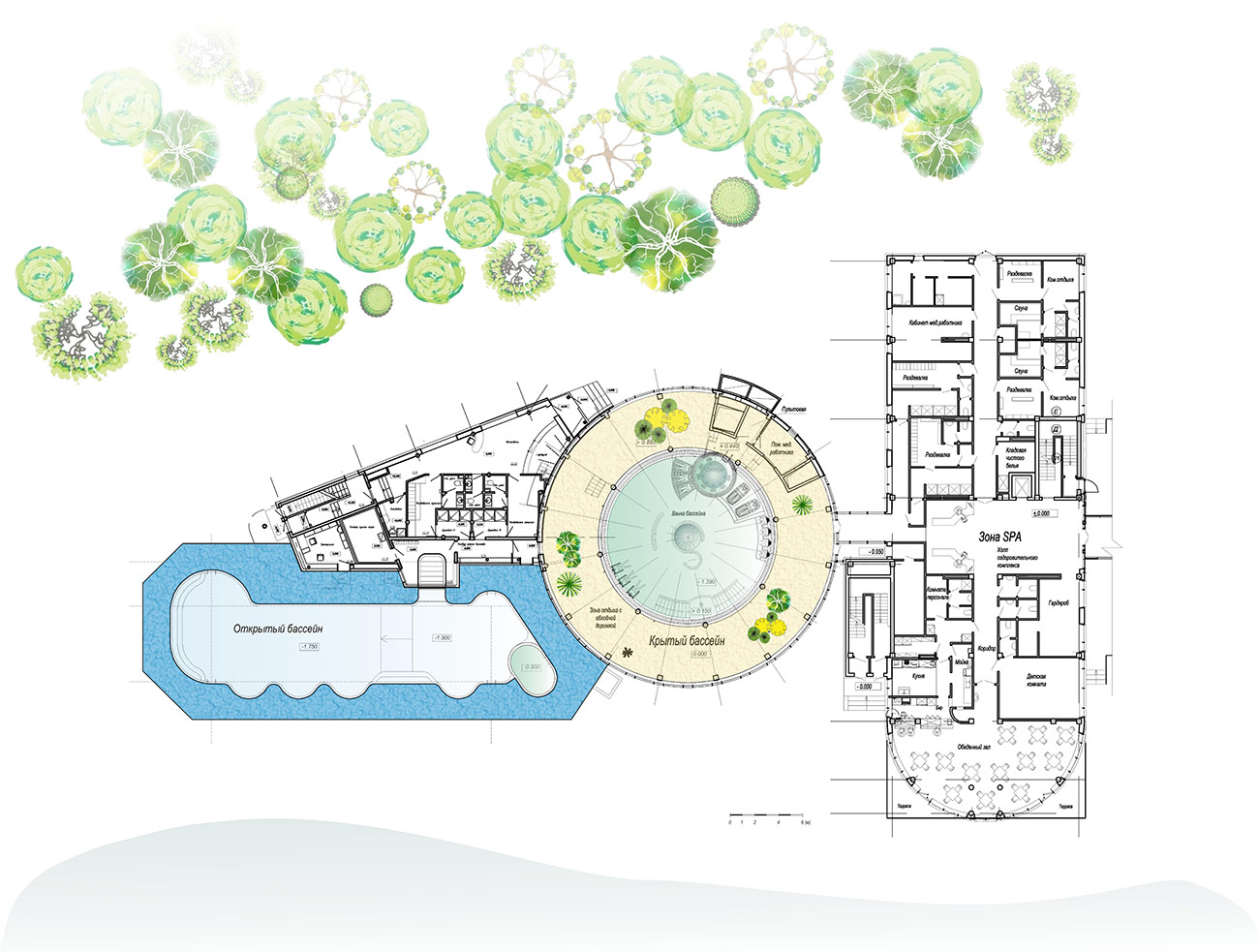 Формируя облик комплекса и wellness-зоны, авторы использовали метод «психодизайна», проложив своего рода маршрут к сердцу и мыслям клиентов гостиницы, где основной задачей была полная релаксация в максимально комфортных условиях!
