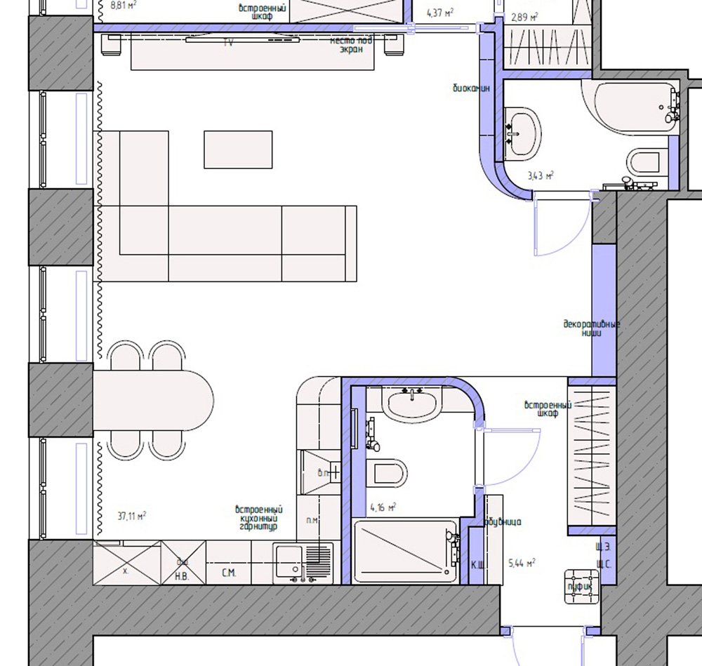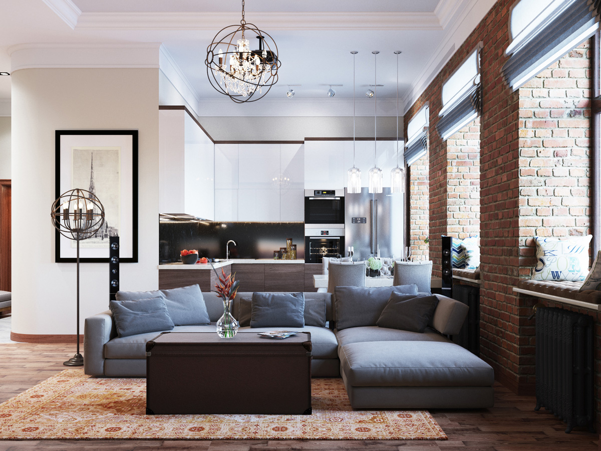 Дизайн-проект интерьера четырехкомнатной квартиры в центре Москвы разработан для молодой семьи. Стиль выбран неслучайно. Он очень точно характеризует нрав семьи. Стилевое направление - это фьюжн лофта и современного функционального минимализма.