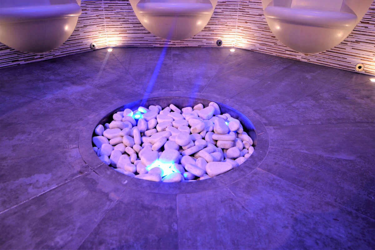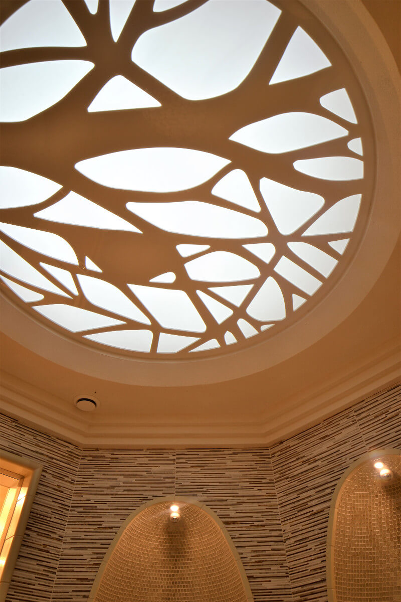 Идея устройства индивидуальных сидений в хаммаме старая и, как оказалось, хорошо забытая. Таким образом, были созданы все условия для изобретения «нового», чем мы и занялись, работая над проектом большого хаммама в новом отеле Hilton. Результат оказался замечательным. Ощущения от «погружения», иначе не скажешь, в комфортное, как будто мягкое сидение в укромной нише удивительно приятные.