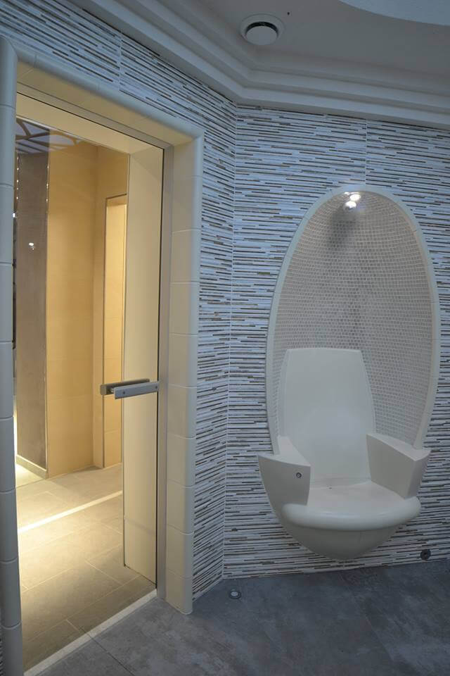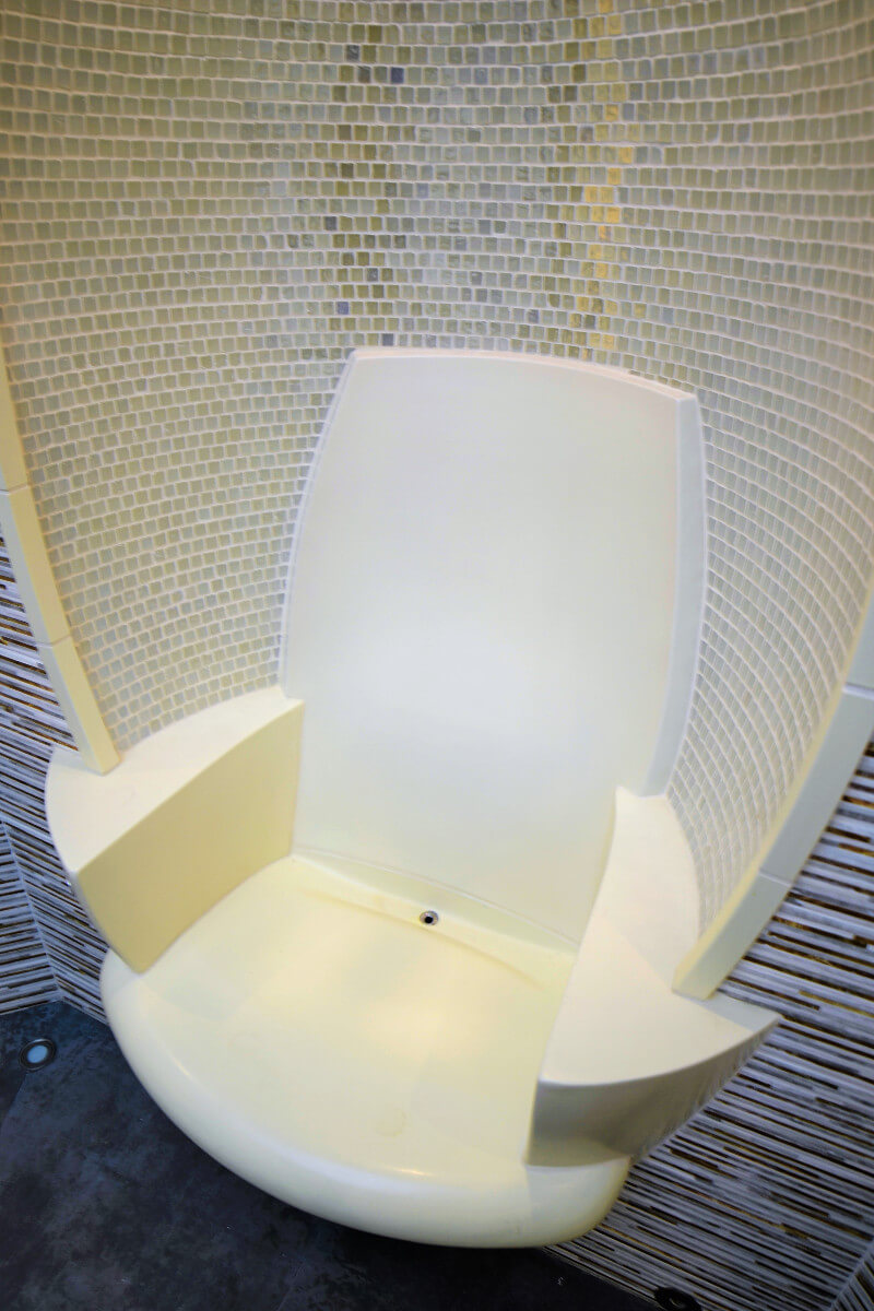Хаммам отделан немецкой керамикой Hilpert серии Oval. Комфортно положив руки на подлокотники и откинув голову, моментально расслабляешься. Никаких усилий для поддержания позы.