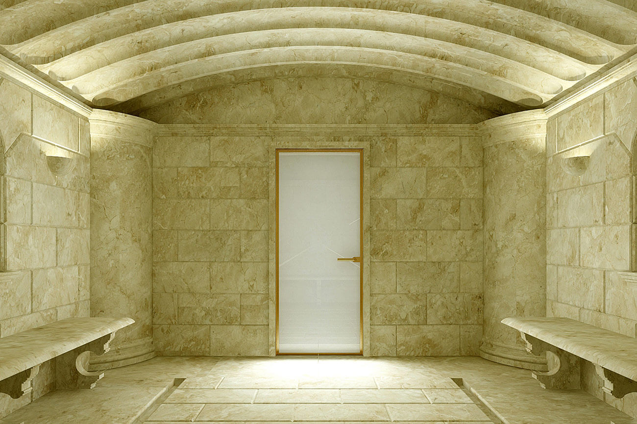 «Хочу хаммам, как у Армани...» — таким было желание заказчика. Путешествуя по Италии, он увидел статью в одном из журналов с фотографией паровой бани в доме Армани. Нашей задачей было использовать стилизацию и материалы, как на фото, но придать больше практичности для использования бани в спортивном комплексе для частной футбольной команды.