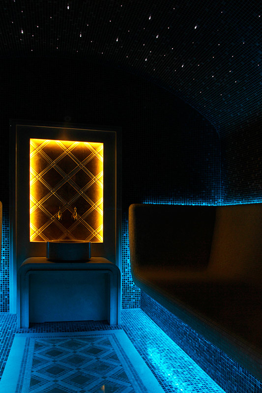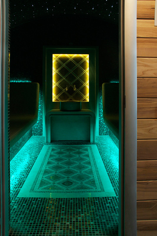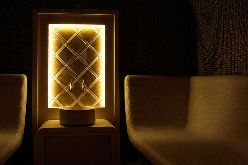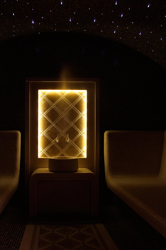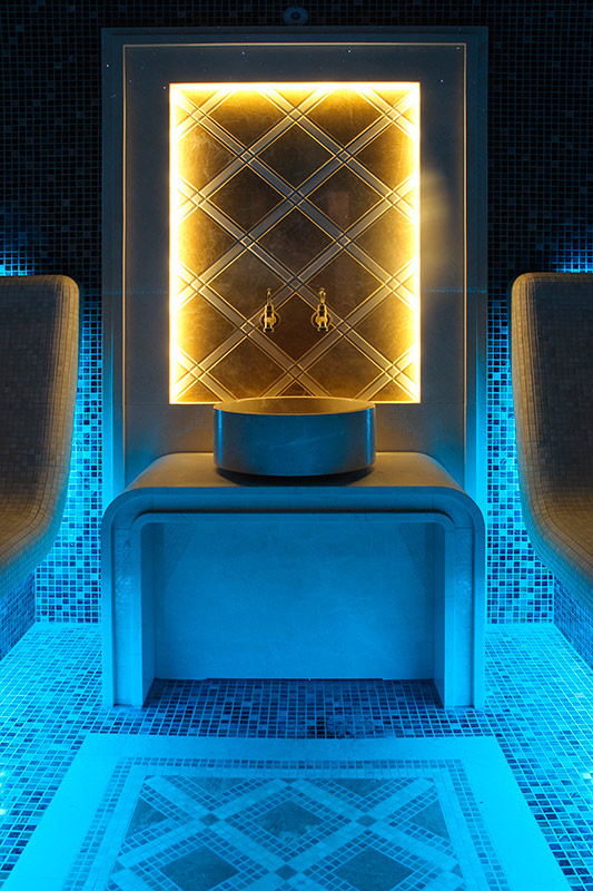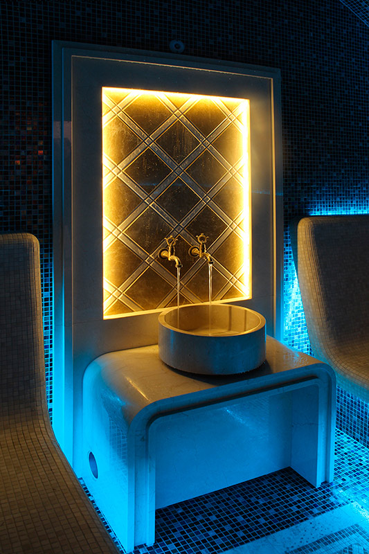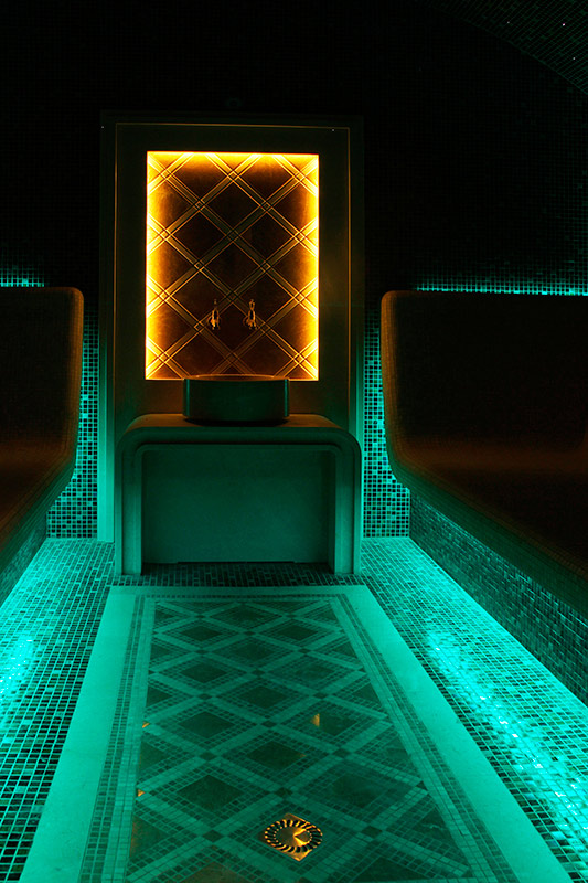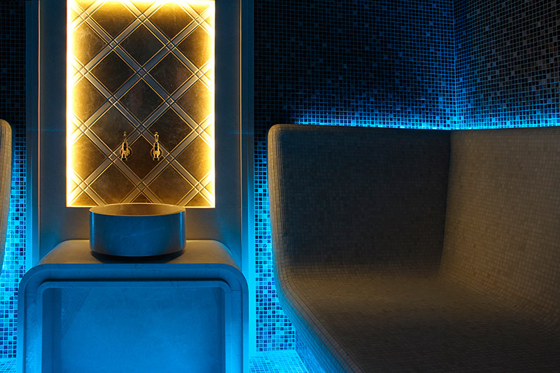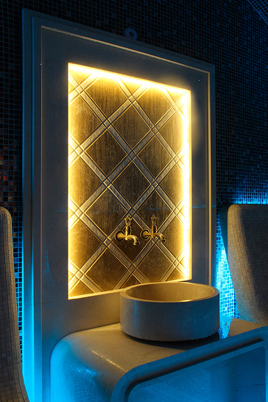 Заказчик хотел, чтобы в хаммаме были удобные лавки, позволяющие свободно сидеть и лежать компании из 4-х человек.