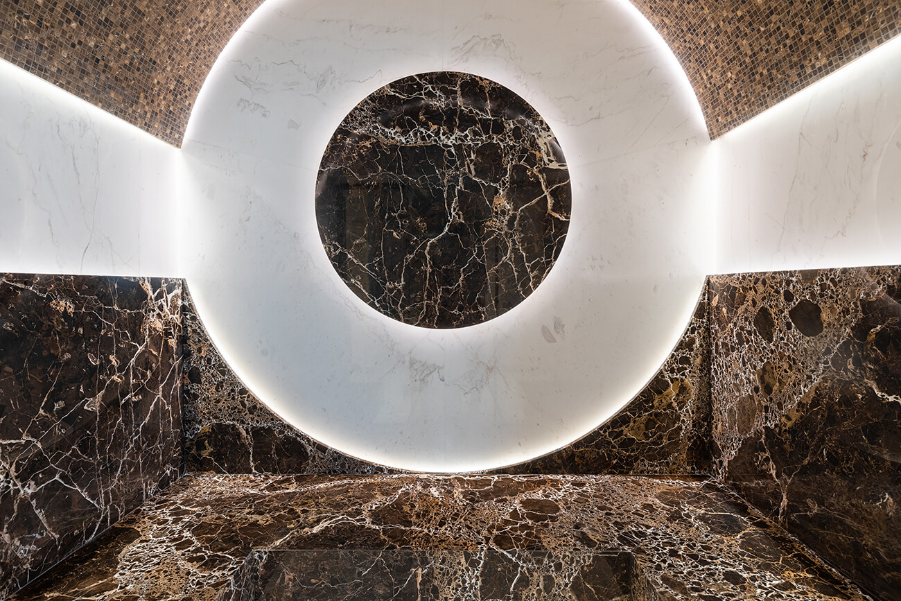 Хаммам оборудован парогенератором EOS, пеногенератором и генератором морского климата WDT.