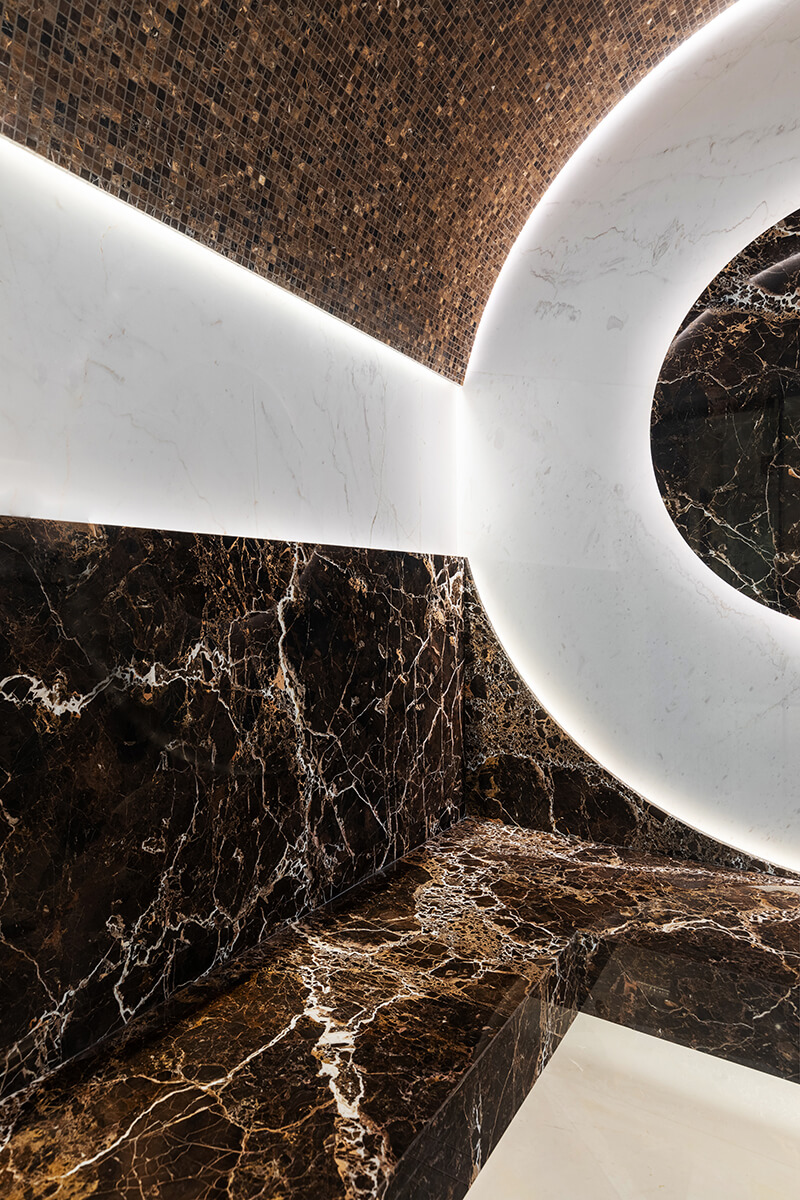 В облицовке всех поверхностей использовался натуральный мрамор.