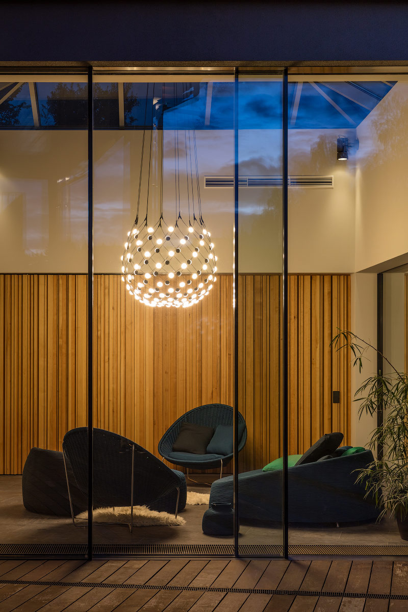 Заказчиком была поставлена цель его модернизировать. С помощью глобальной реконструкции здания, переноса входной группы и лестницы, увеличения площади остекления, удалось создать более современное эргономичное пространство. Благодаря раздвижной оконной системе skyframe окружающий ландшафт словно перетекает в дом и образует единое полотно c интерьером, сад стал частью интерьера.