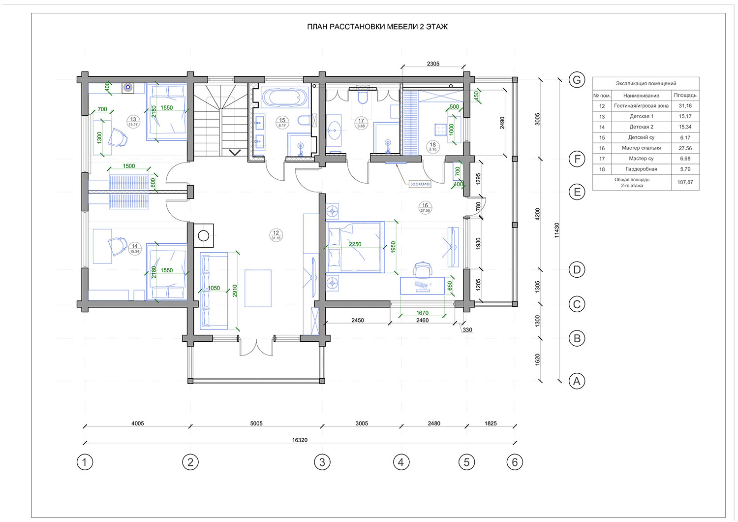 Мы смогли учесть все пожелания по разделению пространства, для каждого члена семьи предусмотрели возможность уединиться в своей комнате или побыть в кругу близких в общих зонах — гостиной, кухне-столовой, зоне отдыха — игровой.