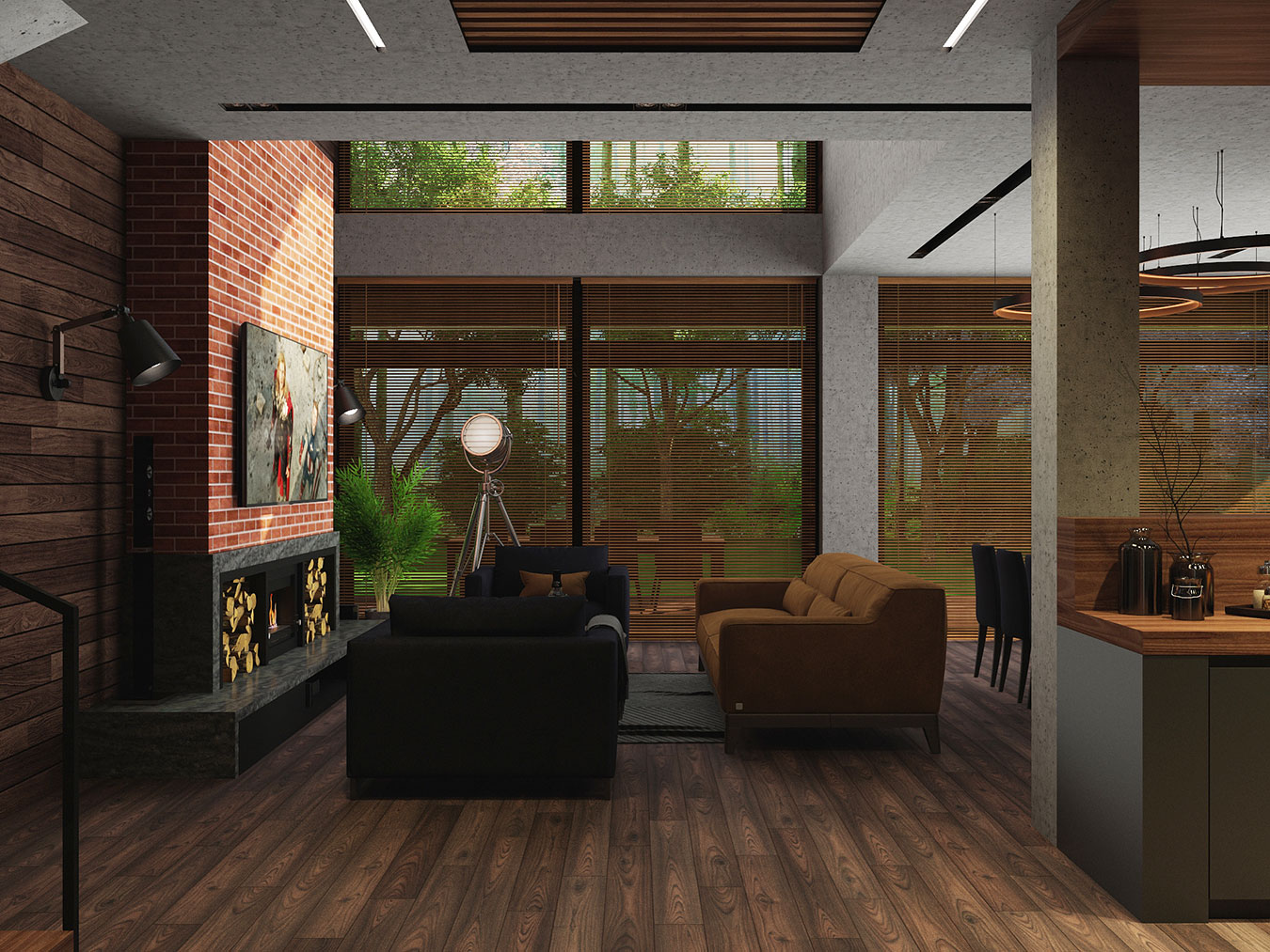 1. Интерьер дома необходимо оформить в современной стилистике.