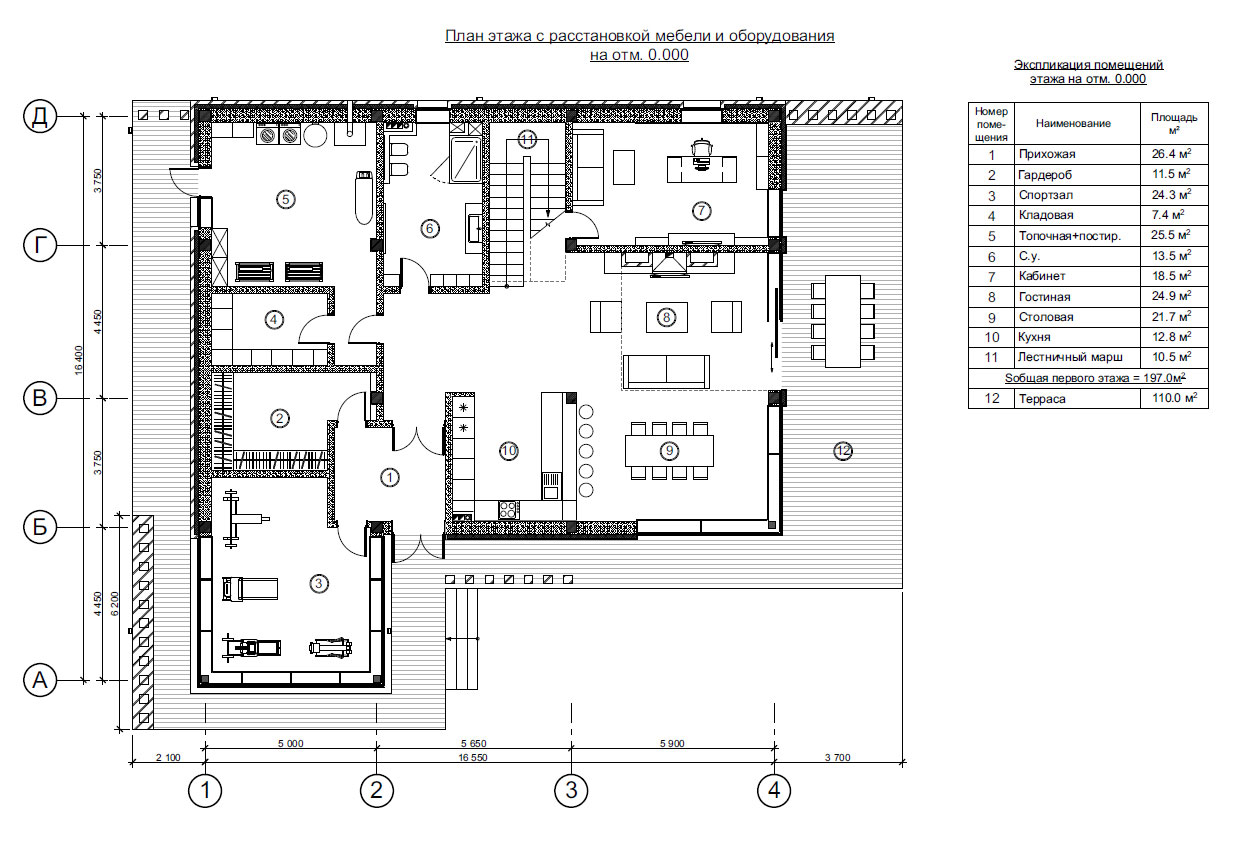 7. В доме должен быть обустроен полноценный зал для занятия кроссфитом с соответствующей высотой потолка (выше, чем высота 1-го этажа) и специальным напольным покрытием.