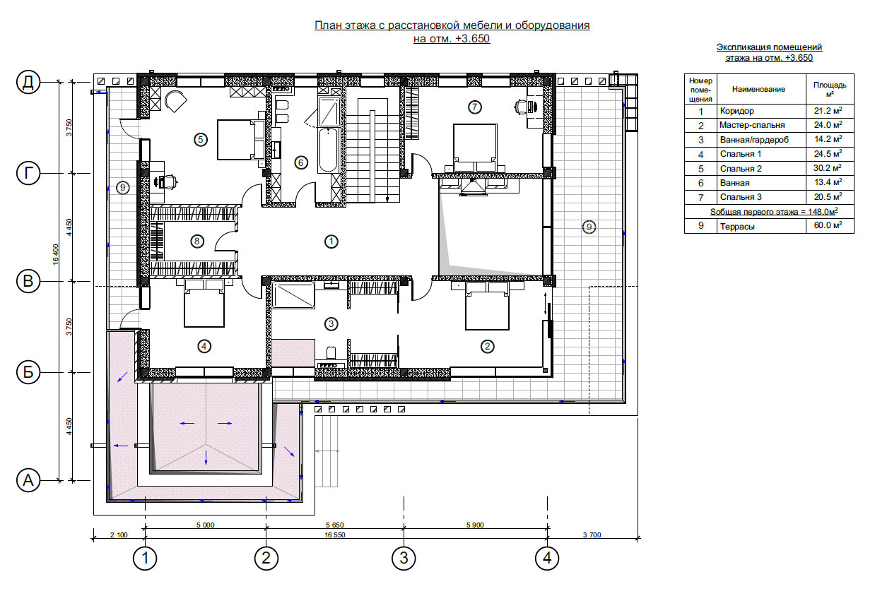 перекрытие — монолитное; частично по профлисту (в зоне консольных выносов — террас)