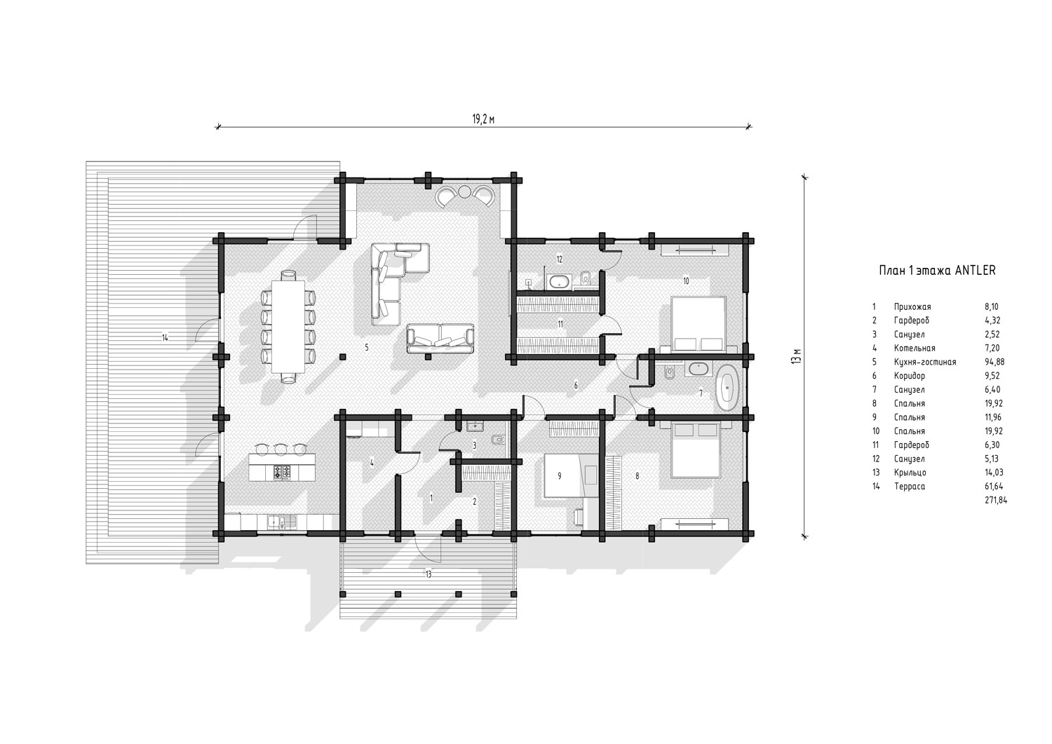 Общая площадь – 272 м²