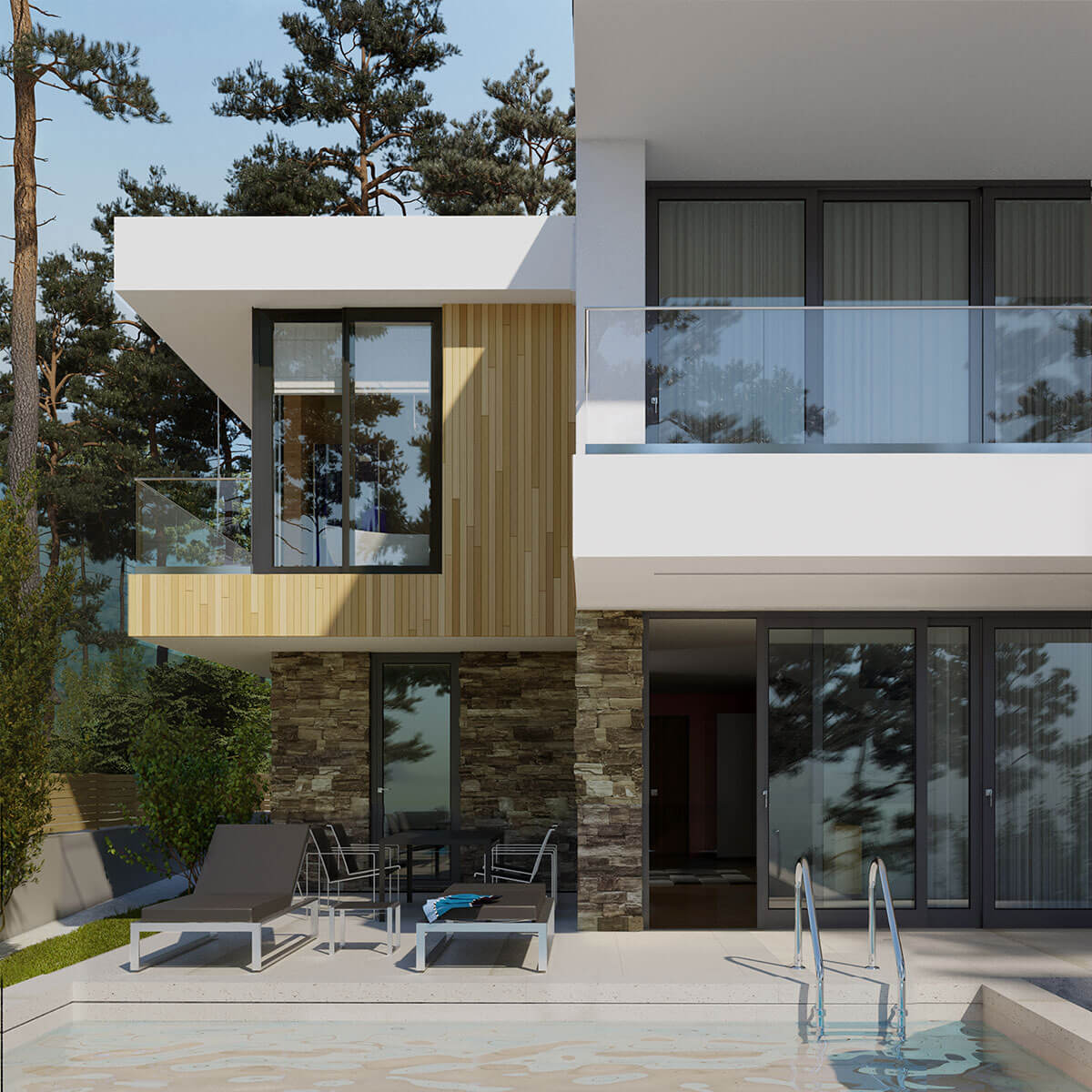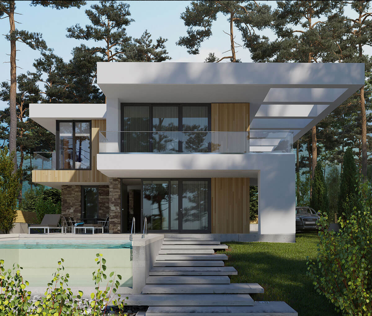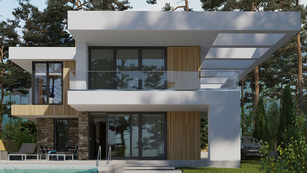 Внешний вид дома продиктован совместными представлениями архитектора и заказчика о виллах класса премиум и также связан с месторасположением участка.