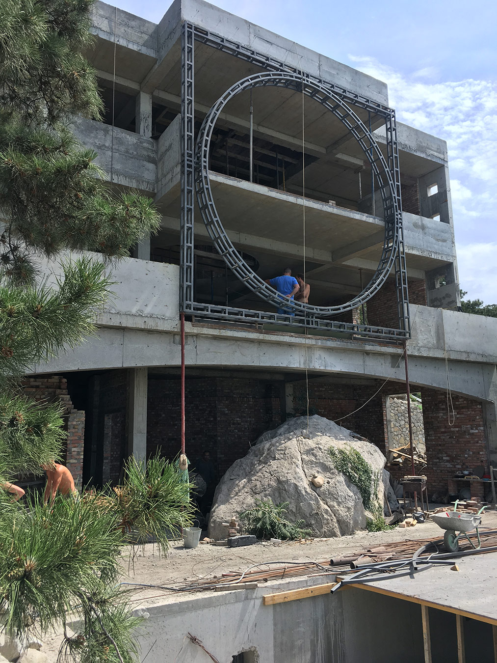Конструкция дома решает две задачи: противодействие южному перегреву (поэтому она сделана трехслойной), и сейсмоустойчивость (имеет жесткий железобетонный каркас и монолитную коробку).