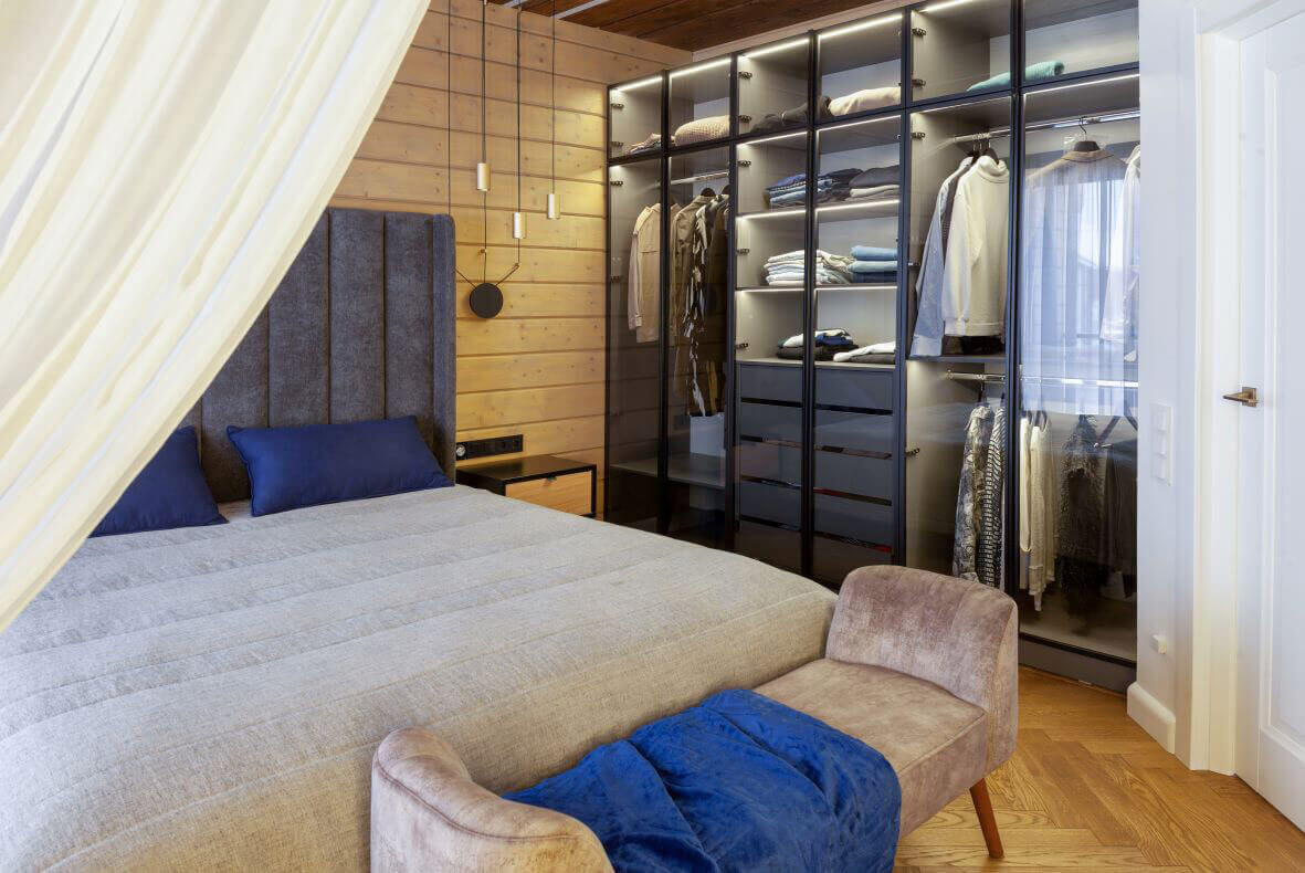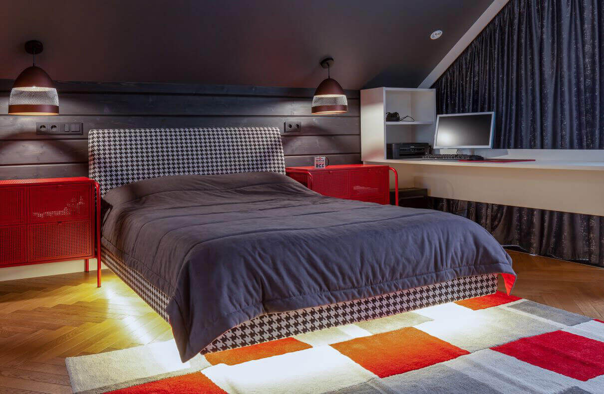Второй этаж — приватный. Здесь расположены 2 детские, спальня родителей и ванная. В каждой комнате отражены увлечения и характер хозяина этого помещения. Царство маленькой принцессы, лаконичность наследника и спокойность и уверенность родителей.