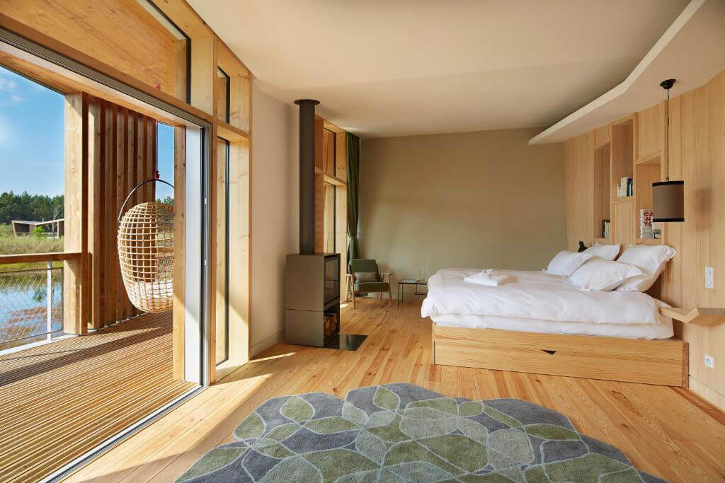 Панорамные остекления открывают потрясающие виды и наполняют внутренние пространства естественным светом. Террасы — всегда обращены к воде, что создаёт ощущение парения над гладью озера. Конструктивное решение позволяет домам буквально зависать над водой на сваях, усиливая иммерсивность пейзажа и давая гостям уникальный опыт слияния с природой.