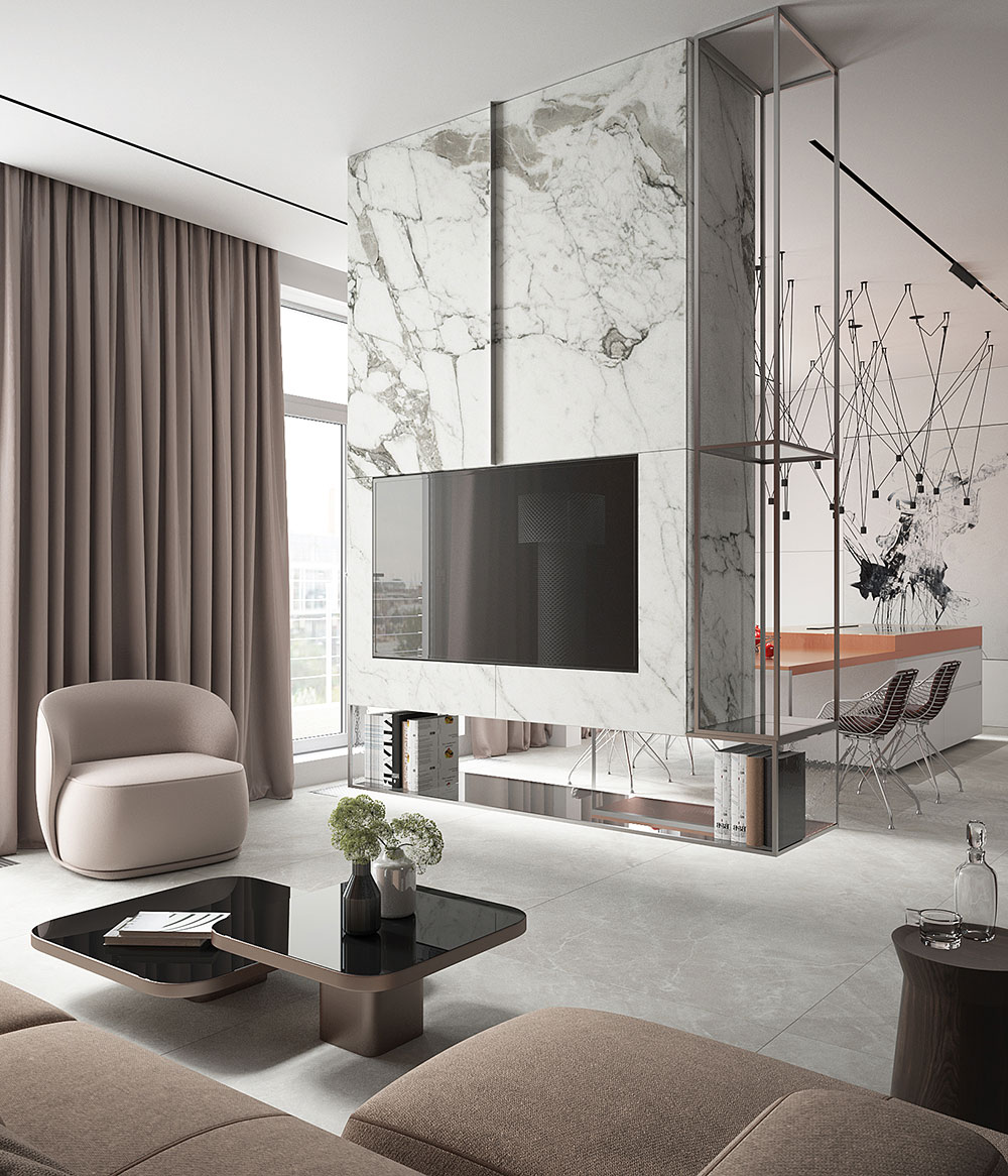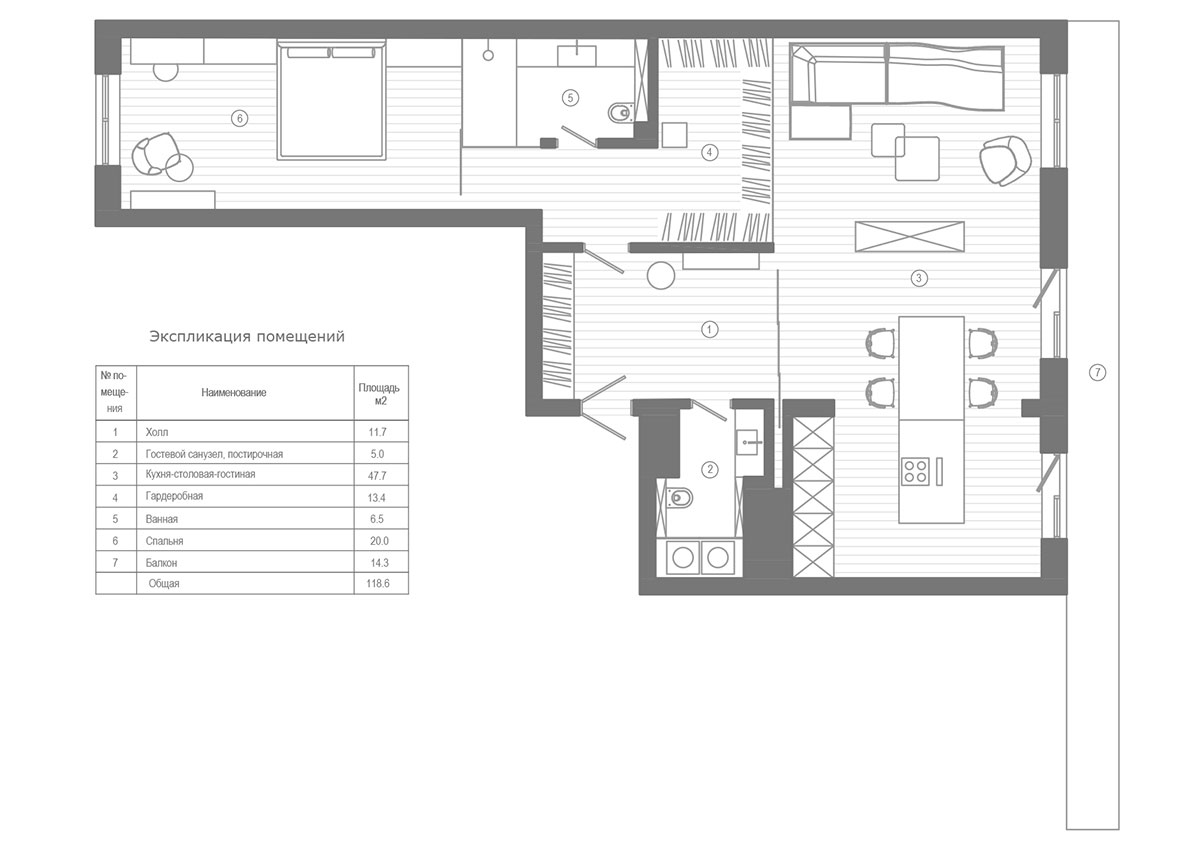 Задачей было спроектировать современную функциональную и просторную квартиру для комфортного проживания двух человек.