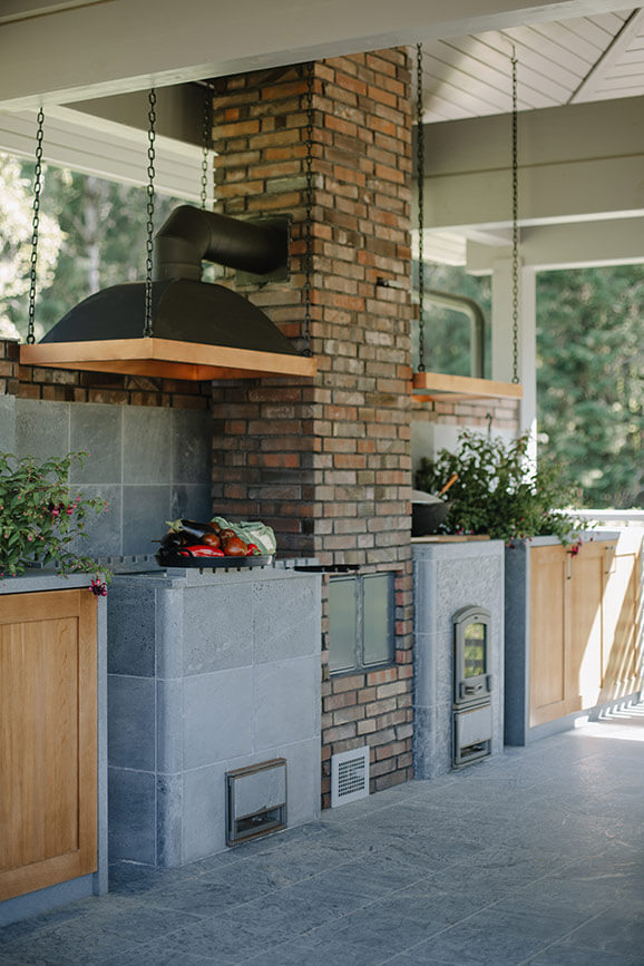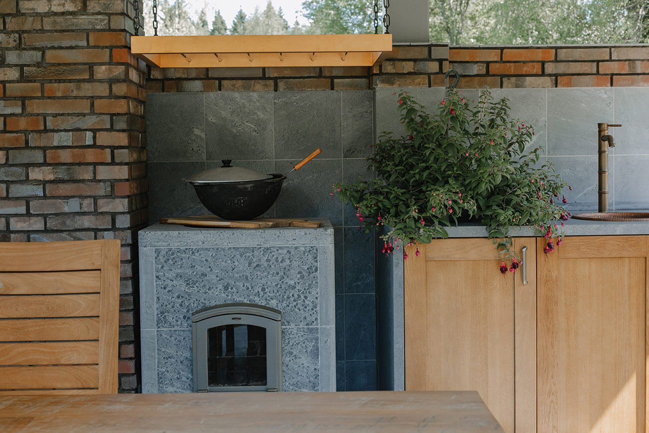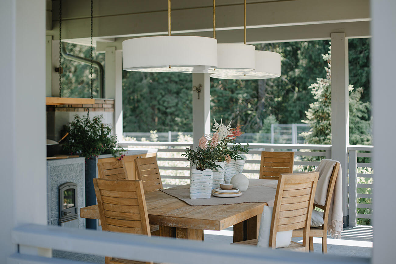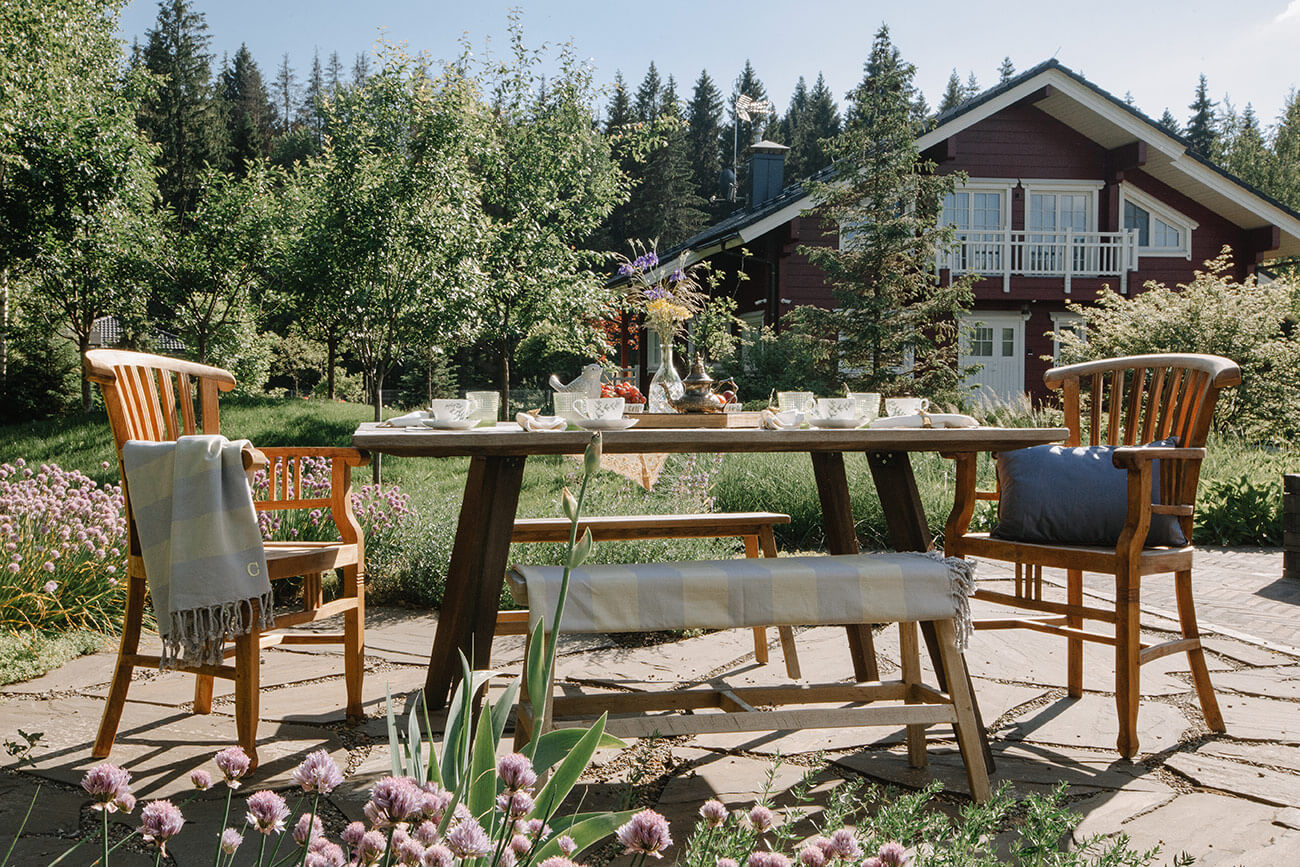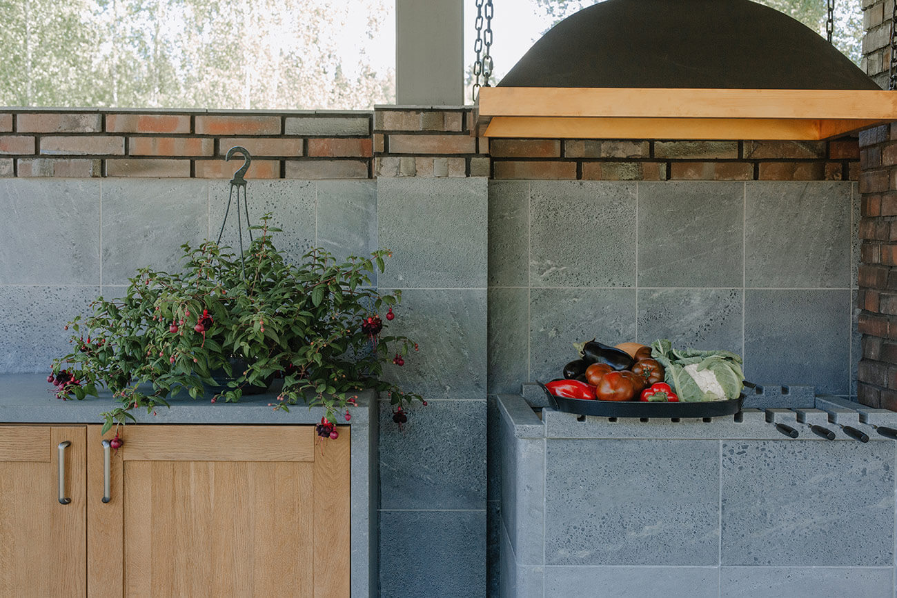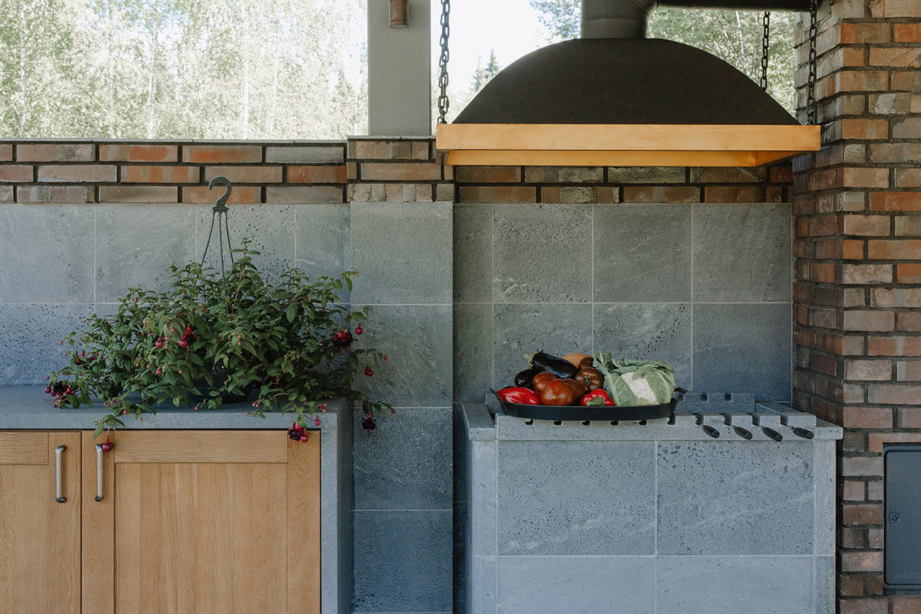 Отправной точкой для проекта стал стиль Алвара Ааалто, основанный на эргономике и лаконичных решениях, — то, что привлекало в идеях финского архитектора, и то, на чем авторы построили интерьер. Плавные линии мебели смягчили конструктивную и геометрически четкую архитектуру деревянного дома.