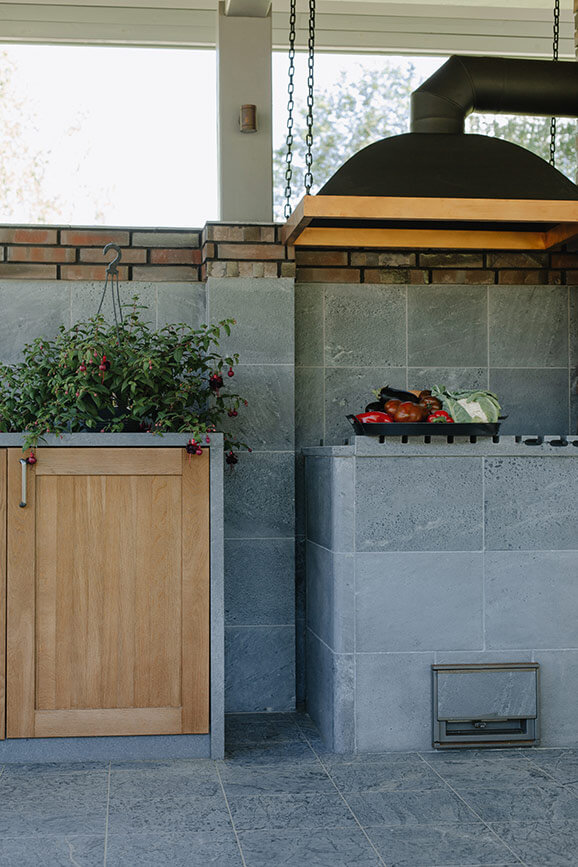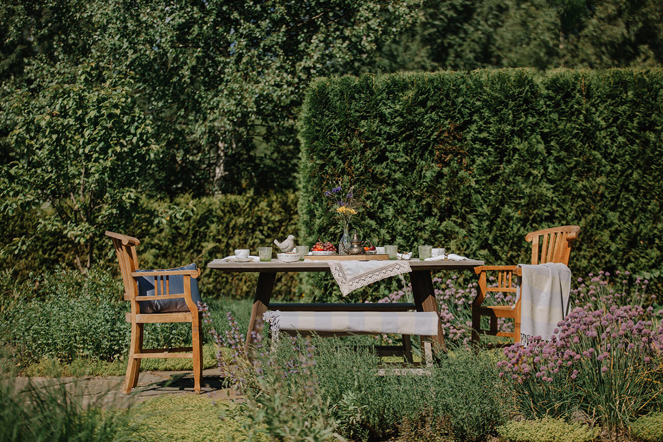 Природная цветовая гамма разбавлена яркими вкраплениями, словно в саду расцвели цветы. Подход, созвучный написанию абстрактной картины, когда на первый взгляд разное смотрится цельным и объединено общей идеей.