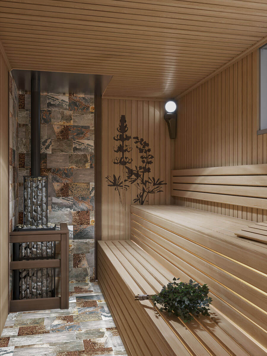 Инжирное варенье и душистый травяной чай послужили источником вдохновения для создания интерьера домашней бани. С давних времен известна польза бани для организма человека. Немаловажную роль для расслабления тела имеет и само времяпрепровождение. Создавая уютное пространство, мы представляли сам процесс отдыха, когда человек, максимально расслабленный после банных процедур, может заварить душистый чай, угоститься домашним вареньем, лакомствами и в приятной компании провести время.