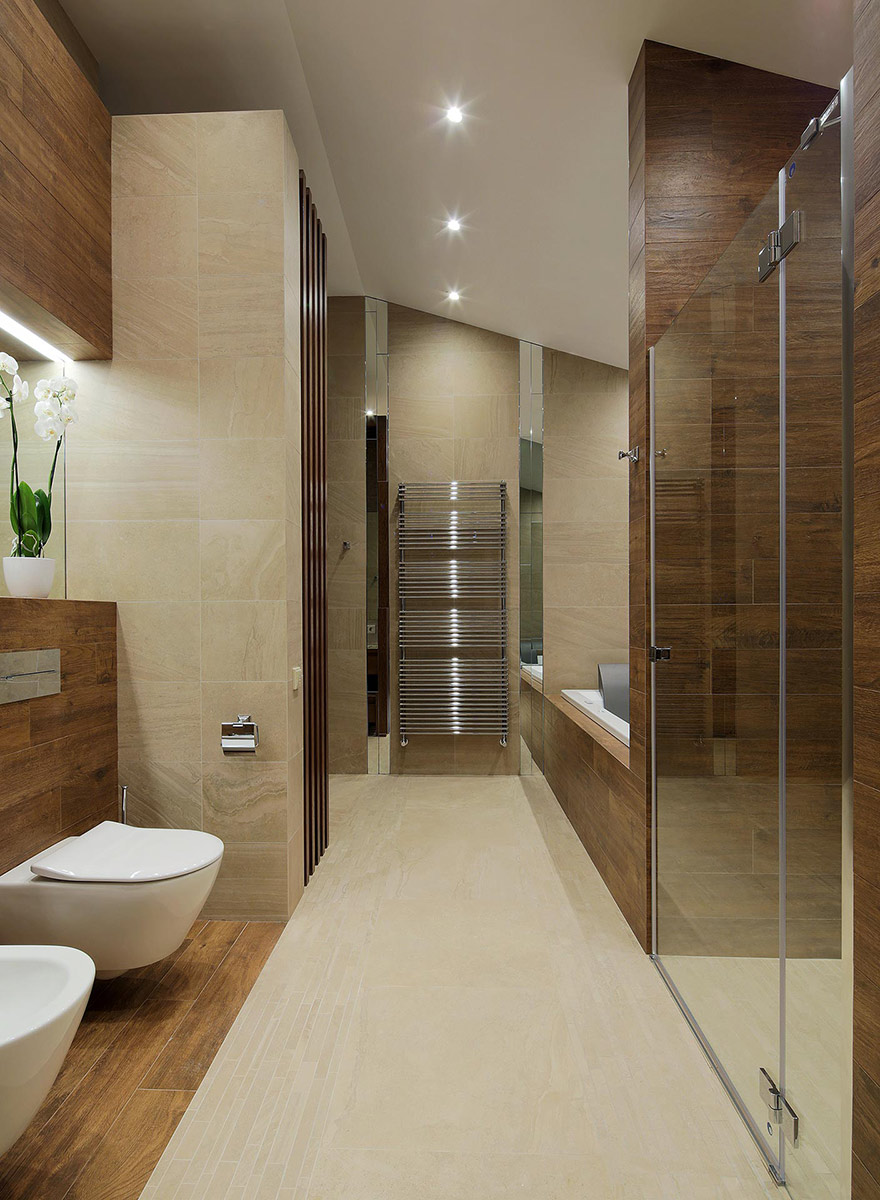 От отдельно стоящих шкафов отказались в пользу гардеробных комнат и встроенных систем хранения. Исключением не стала и кухня, основную часть которой занимают высокие встроенные шкафы с техникой и местами для хранения. Оставлен только один подвесной модуль в рабочей зоне, куда встроена вытяжка. Сделанный под цвет стен и минималистским по форме он словно растворяется в пространстве.
