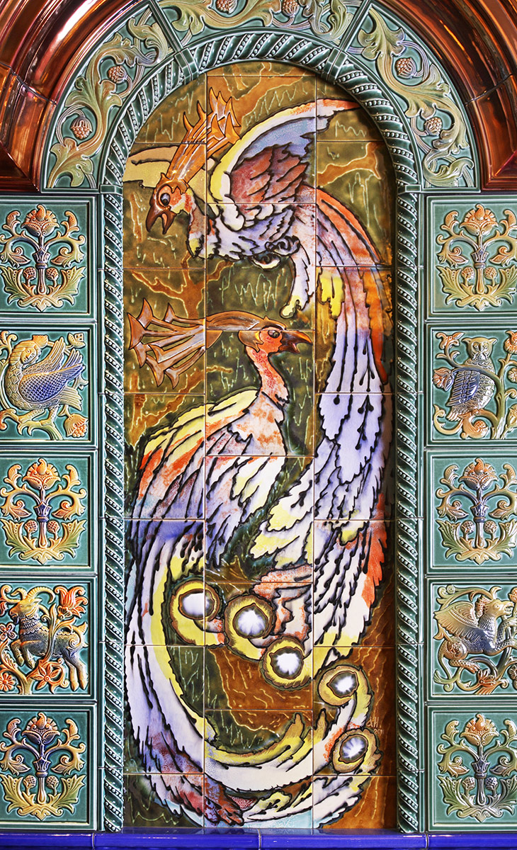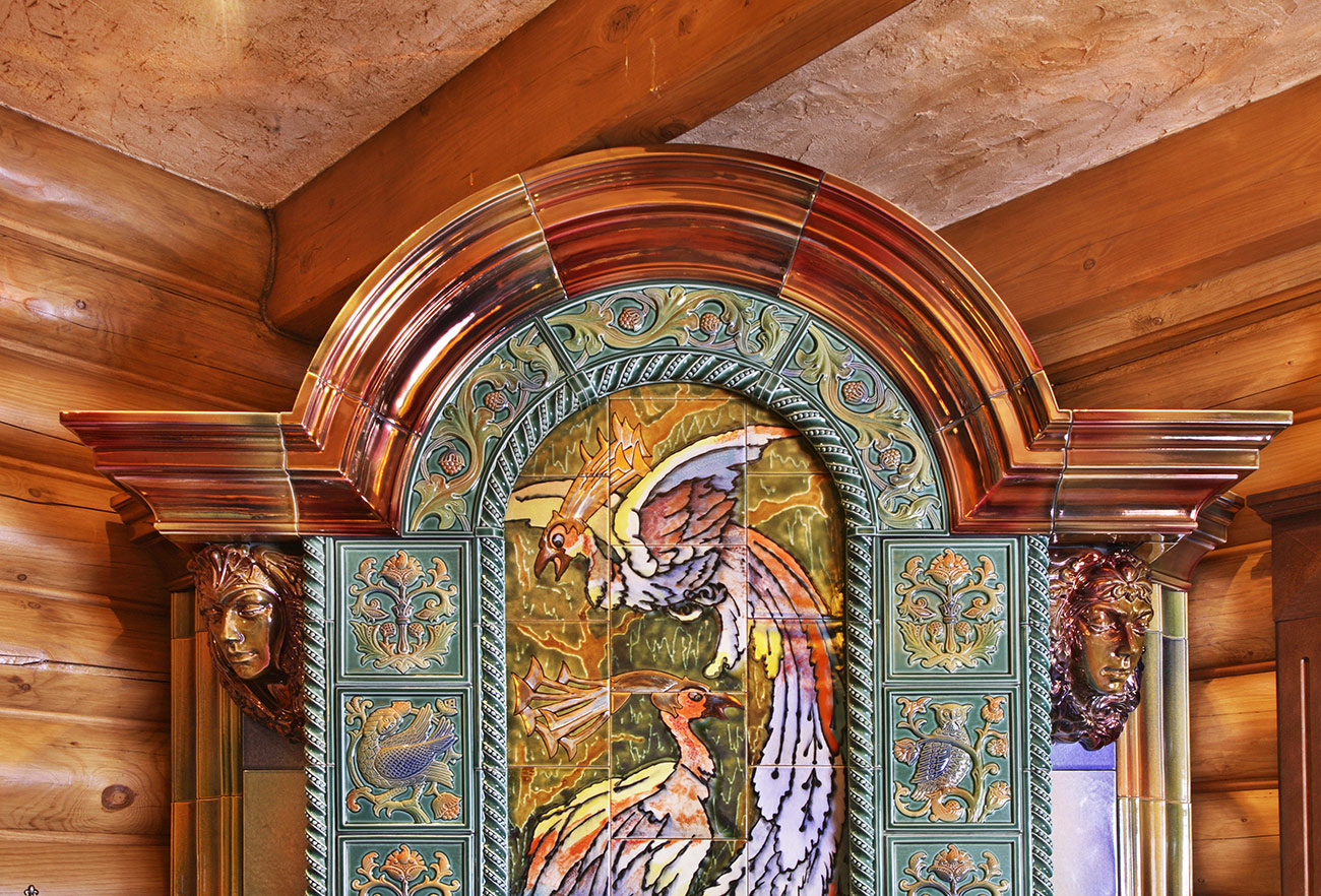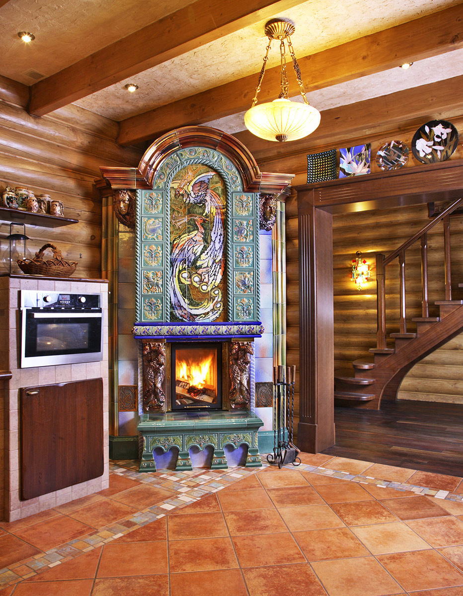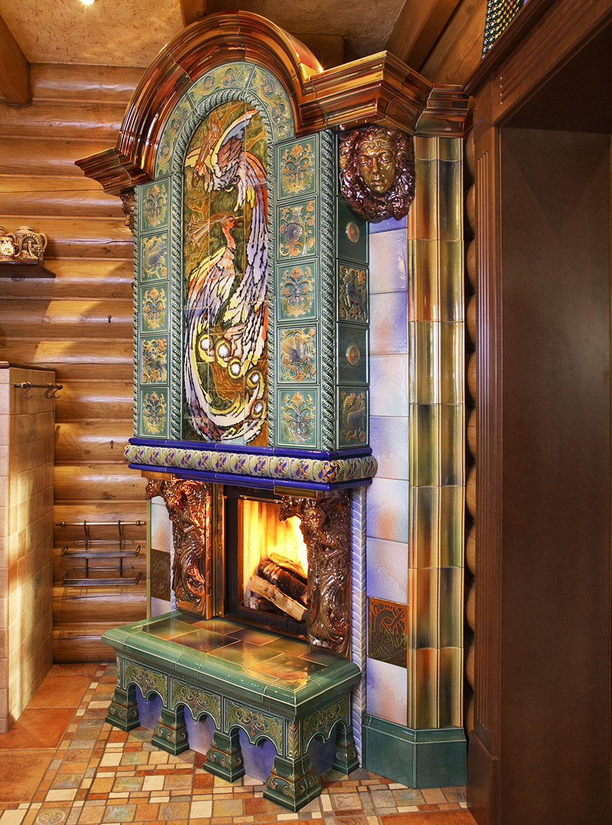 Изразцовый камин с панно Жар-птица
