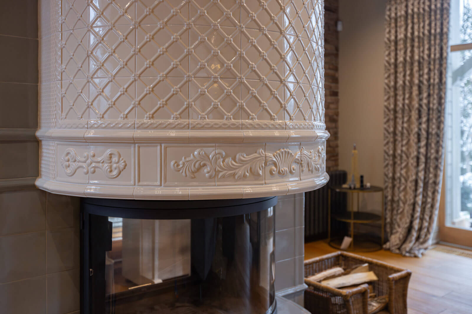 В проекте представлена одна из популярных изразцовых коллекции «Альбион», скомбинировано несколько цветов глазурей, которые идеально подчеркнули стиль и эстетику этого интерьера.