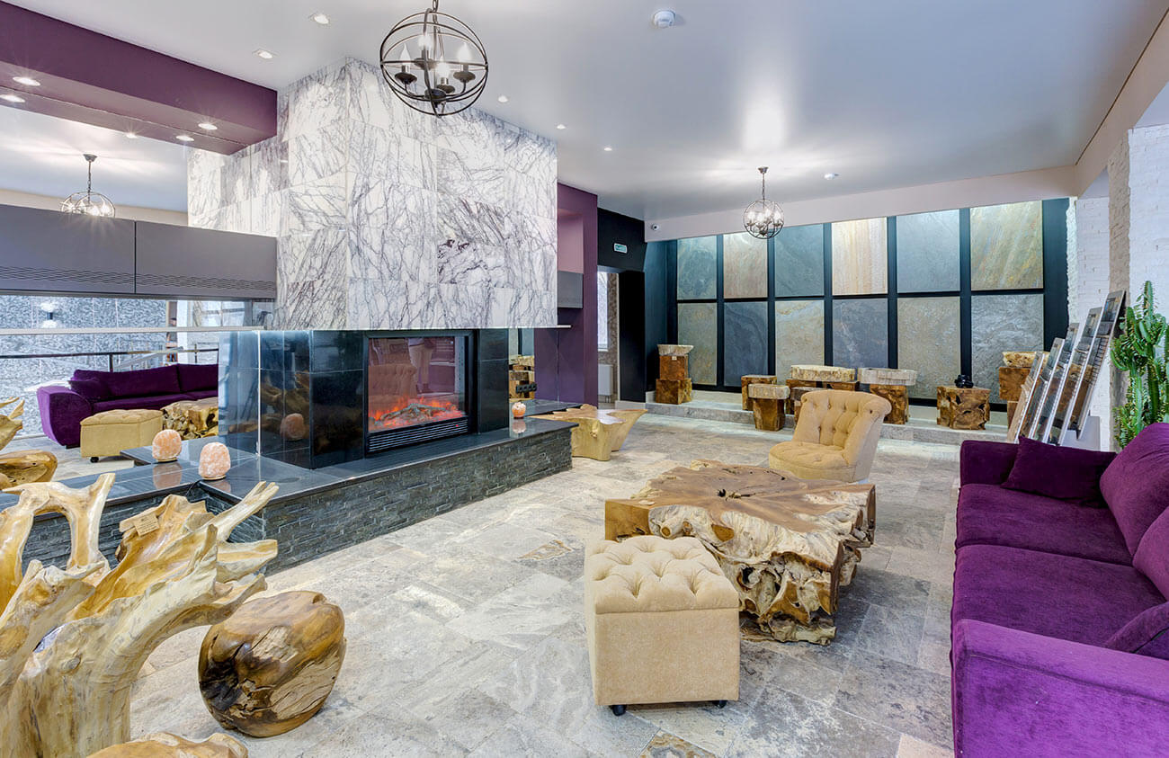 «Камин для гостей» — уютное место уединения для работы дизайнеров и архитекторов, а также приема посетителей выставочного салона — таковым было техническое задание на исполнение каминного портала.
