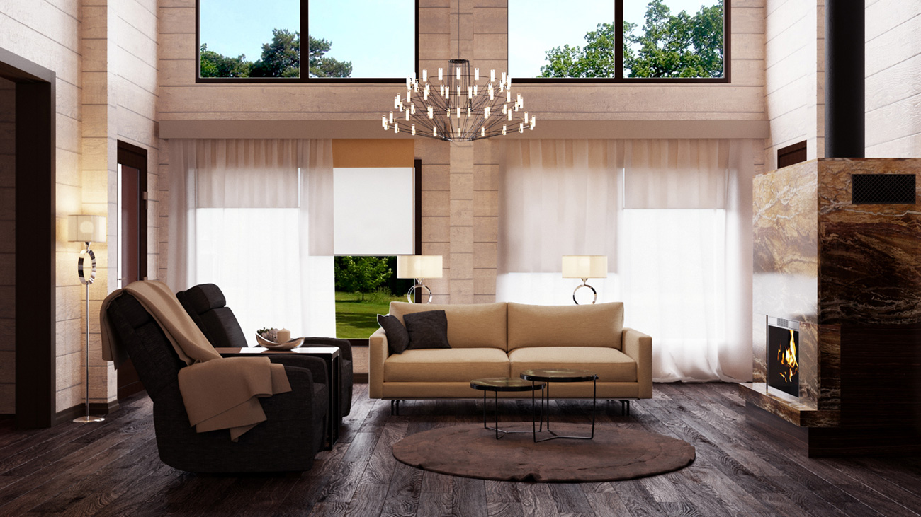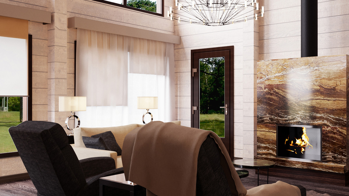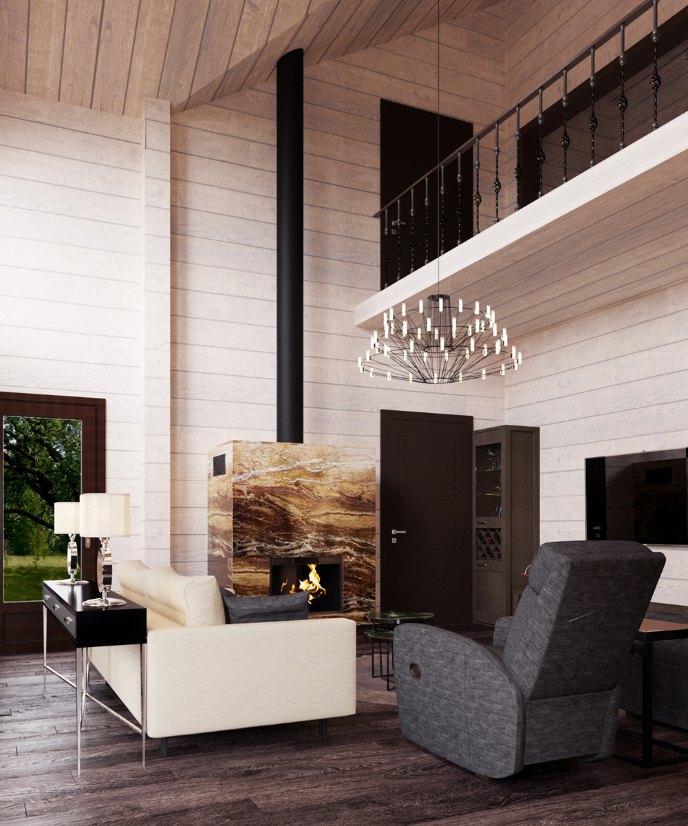 Данный проект разработан для КП Лемболово Парк. Нашей задачей было сделать камин самым главным акцентом в интерьере.