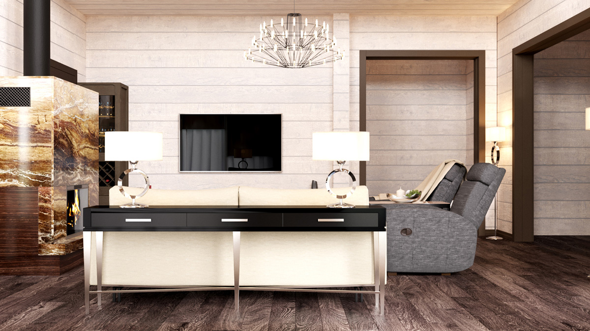 Основная часть мебельных комплектующих объекта уже была выбрана и частично закуплена заказчицей. Исходя из этой ситуации мы прорисовывали интерьер.