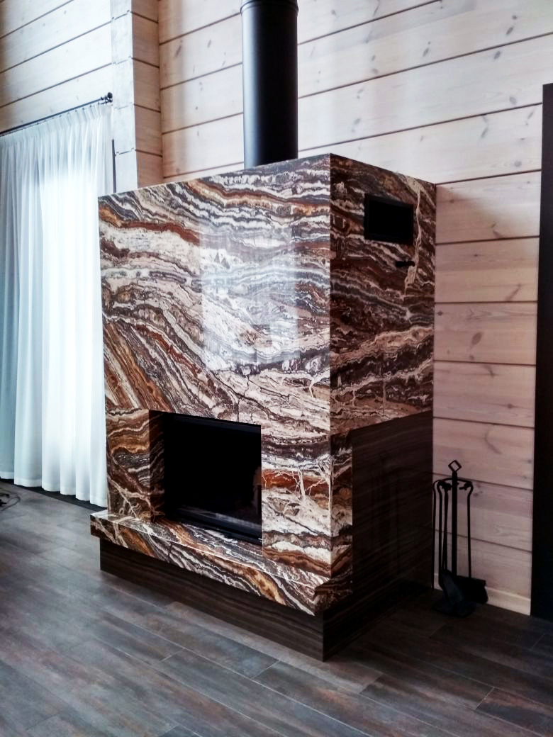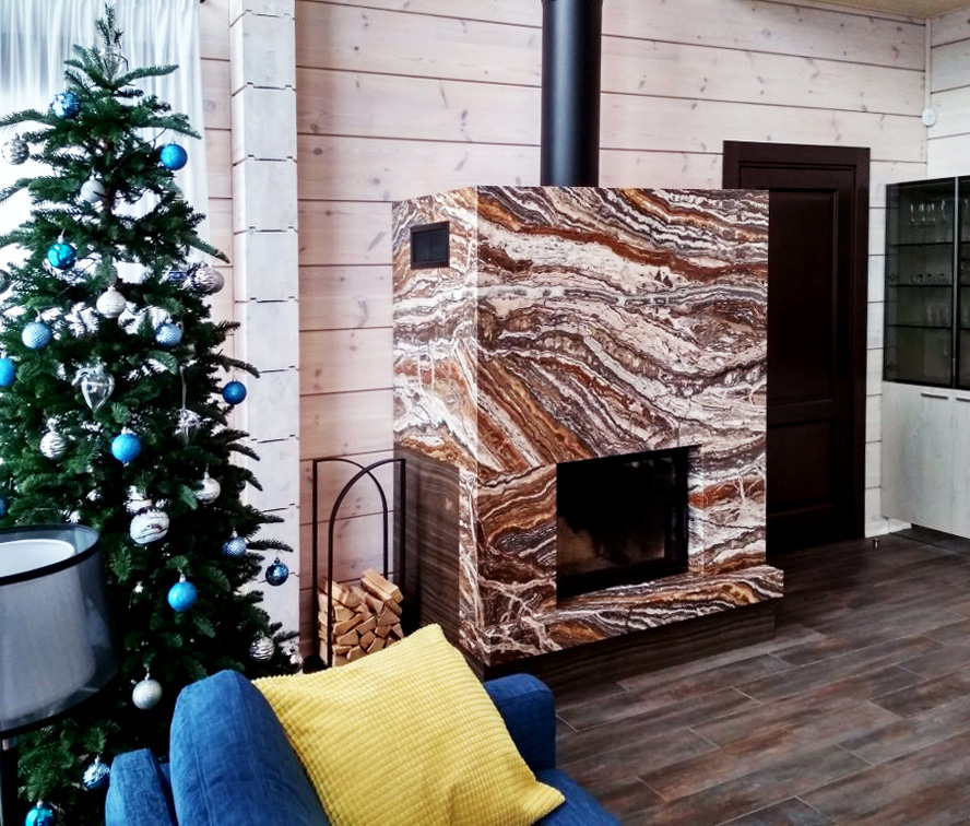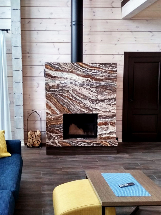 Итог: цель, которую мы преследовали, достигнута: строгий, яркий и живописный камин стал украшением этой гостиной.