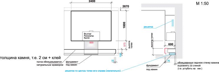 Каминная топка Brunner по техническим характеристикам не могла быть большего размера, решили увеличить камин за счет зашивки дымохода.