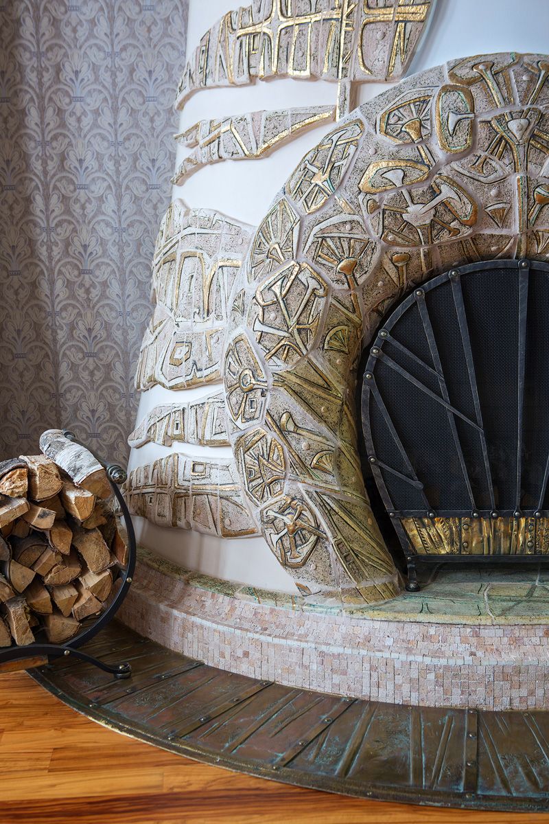 Камин«Утро» олицетворяет свежесть и очарование раннего пробуждения. Один только взгляд на это произведение переносит зрителя на майский луг, усыпанный одуванчиками: туман стелется над рекой, капли росы щекочут босые ноги. Солнце медленно поднимается из-за горизонта, а золотые блики в узорах камина только подчеркивают зябкую красоту весенних цветов.