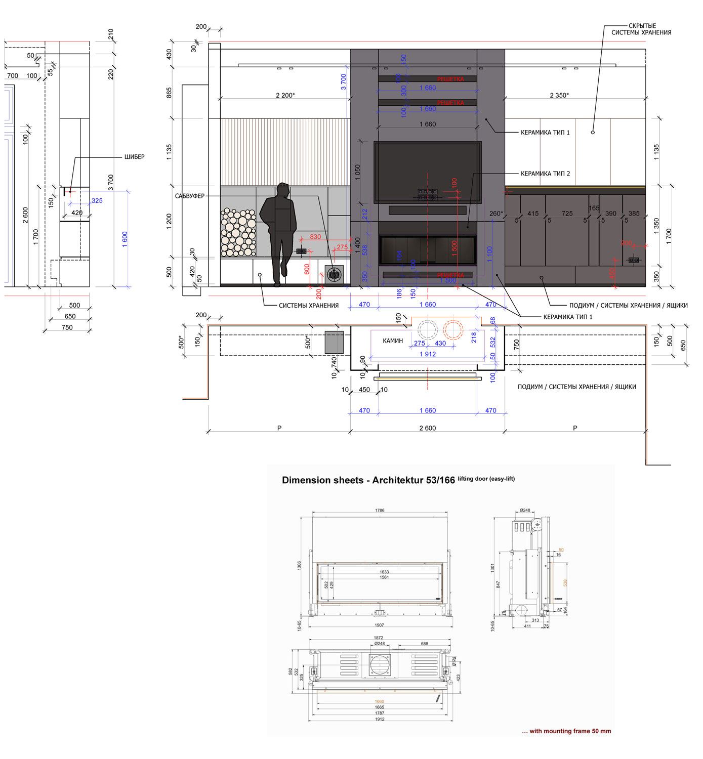 В отделке камина использованы материалы, которые также применяются на фасаде дома, с целью создания взаимосвязи между интерьером и экстерьером, объединяя их в общее пространство.