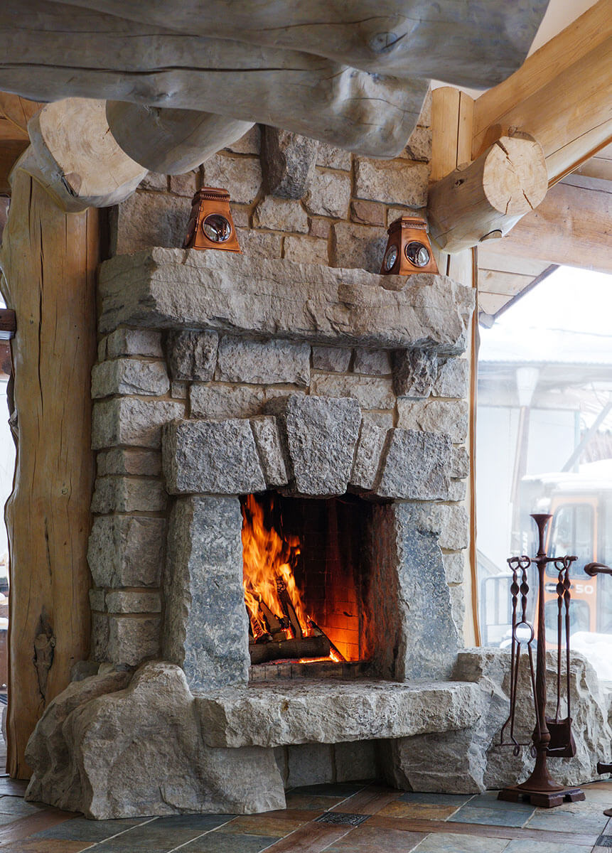 Основной поставленной задачей, при проектировании и изготовлении камина, было получить в интерьере камин в стиле рустик. Такое изделие максимально подходит под общий дизайн дома, построенного из огромных бревен (до 1 метра в диаметре) по технологии Post & Beam.Нужно было объединить две массивные конструкции (отдельные топки), камин внутри и в зоне барбекю, в достаточно небольшом пространстве.