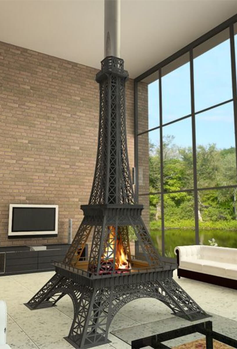 Что есть современный стиль? А современный стиль в каминах? Это отображение чего-то нового, непривычного для классического восприятия. Мраморные порталы с резными и объемными рисунками — это красиво, но это классика. Камины из металла — вот это что-то выходящее за рамки привычных восприятий, а если это еще и камин в виде Эйфелевой башни?! Удивительно!