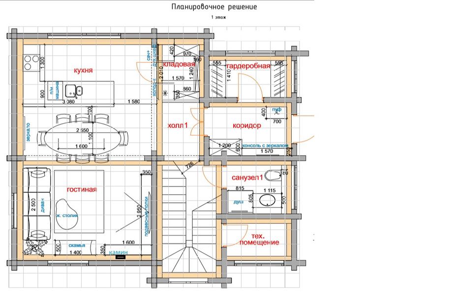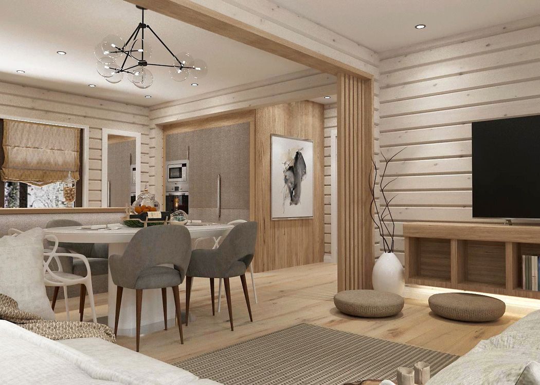 Все это учтено и организованно на 1 этаже дома. Окна в пол, минимум простенков.