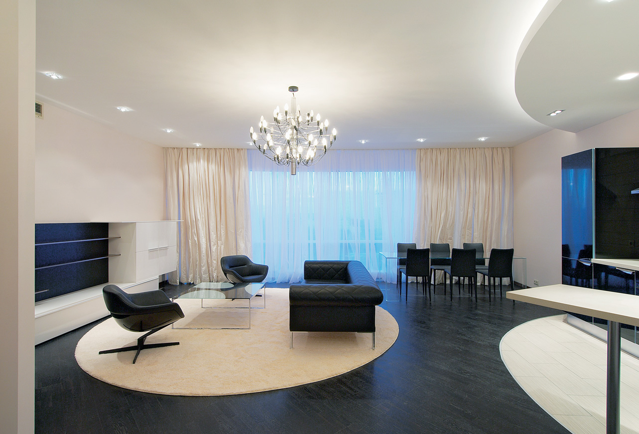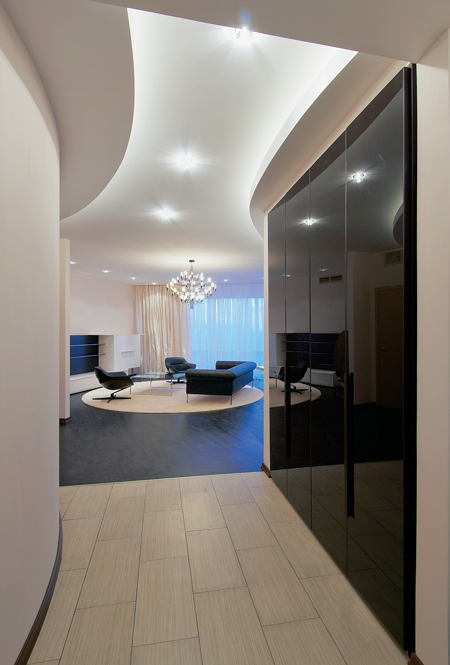Линии и графичность цветового контраста становятся основой решения дизайна городской квартиры. Одна из особенностей объекта — мобильность всех элементов интерьера, возможность при желании изменить обстановку, доработав ее с учетом характера и предпочтений владельцев.