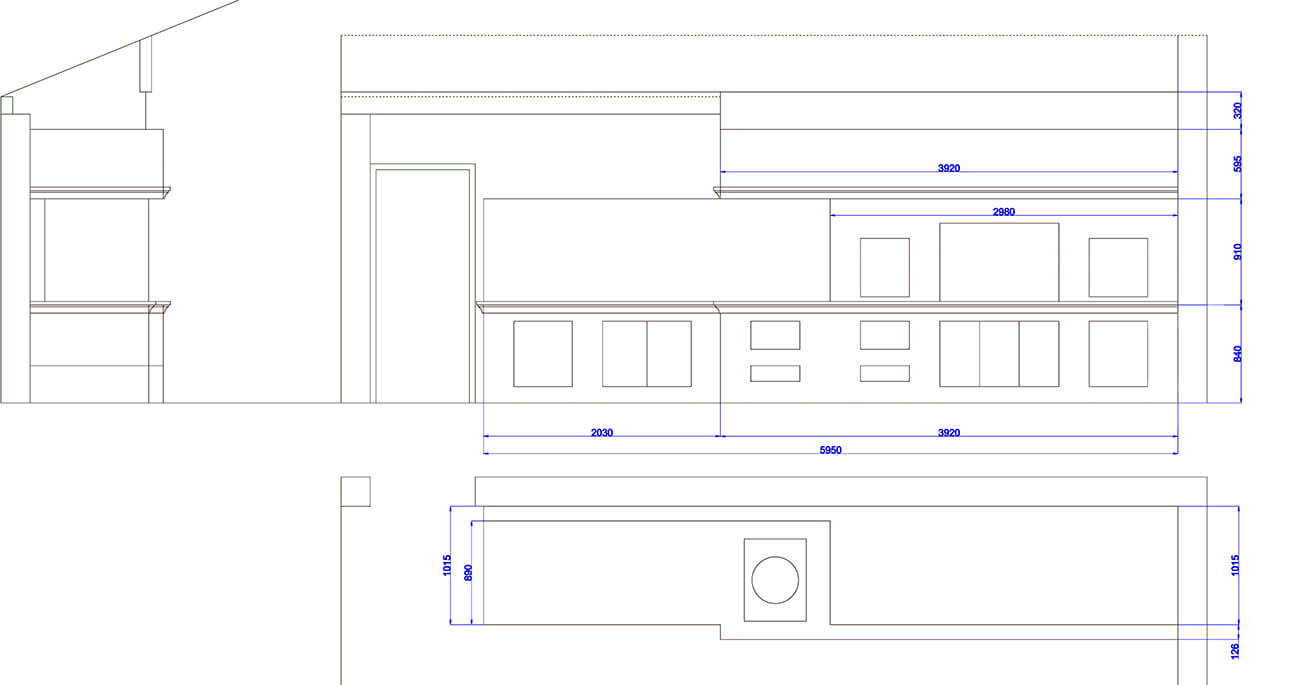 Печной комплекс включает в себя мангал-барбекю, печь под казан, духовку с функциями русской печи, коптильню, мойку и шкафы для хранения. Спроектирован для крытого помещения — беседки со стеклянным ограждением, через которое открывается живописный вид в сад.v