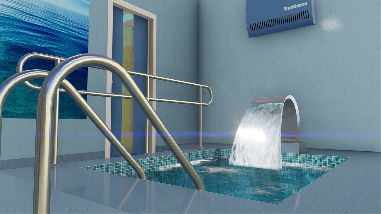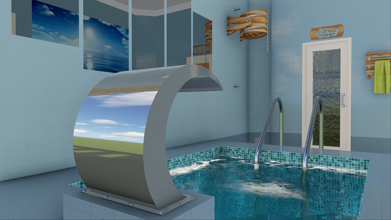 Для облицовки выбрана керамическая и мозаичная плитка. По просьбе заказчика бассейн используется как «теплый», так и «холодный», в зависимости от режима работы.