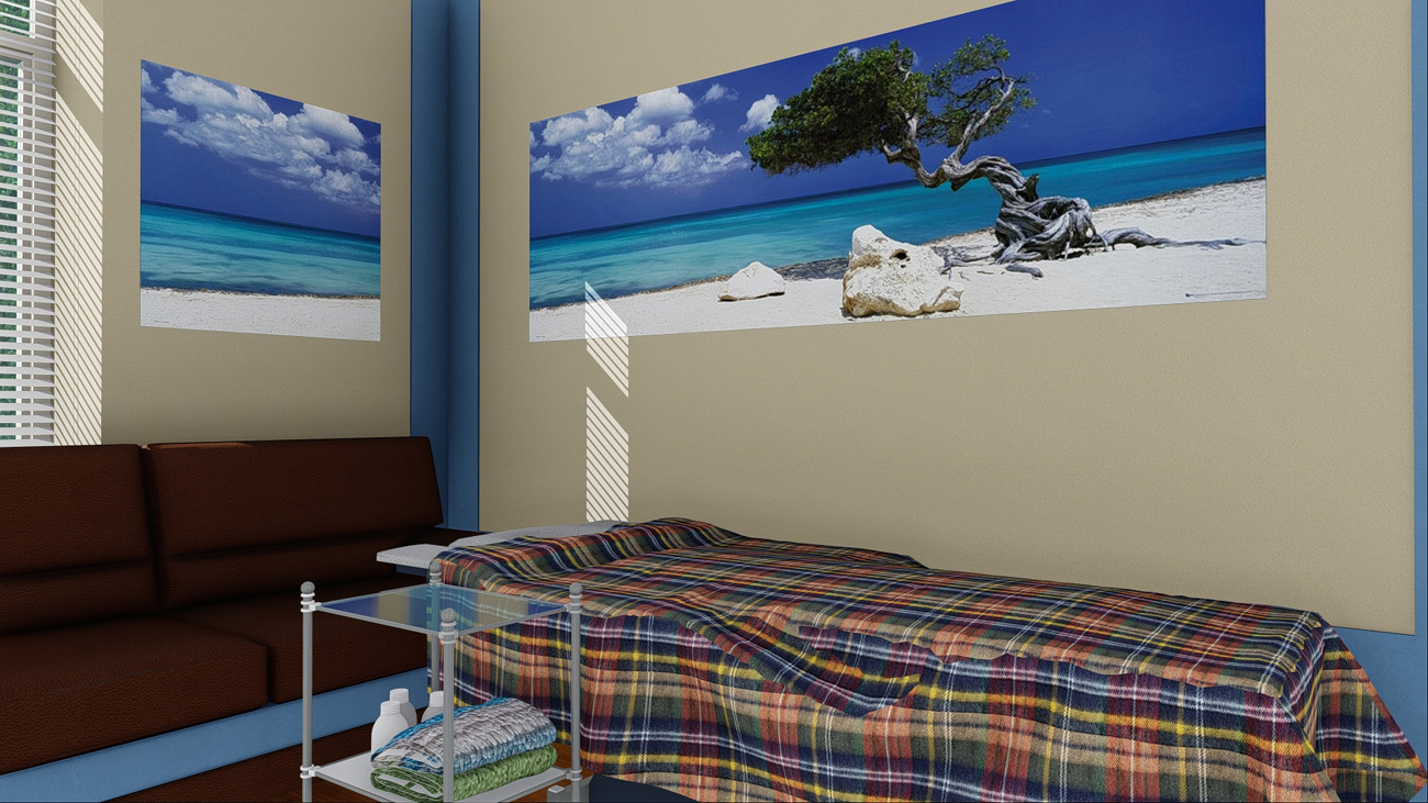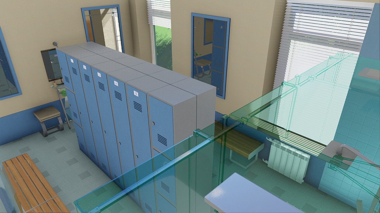 Комплекс реабилитации и восстановления составляют следующие помещения: ресепшн, тренажерный зал, комната сенсорной активности (бильярд и настольный теннис), кабинет физиотерапевта, реабилитационная комната с массажным кабинетом, бассейн, парная баня, душевые с раздевалкой и санузлы.