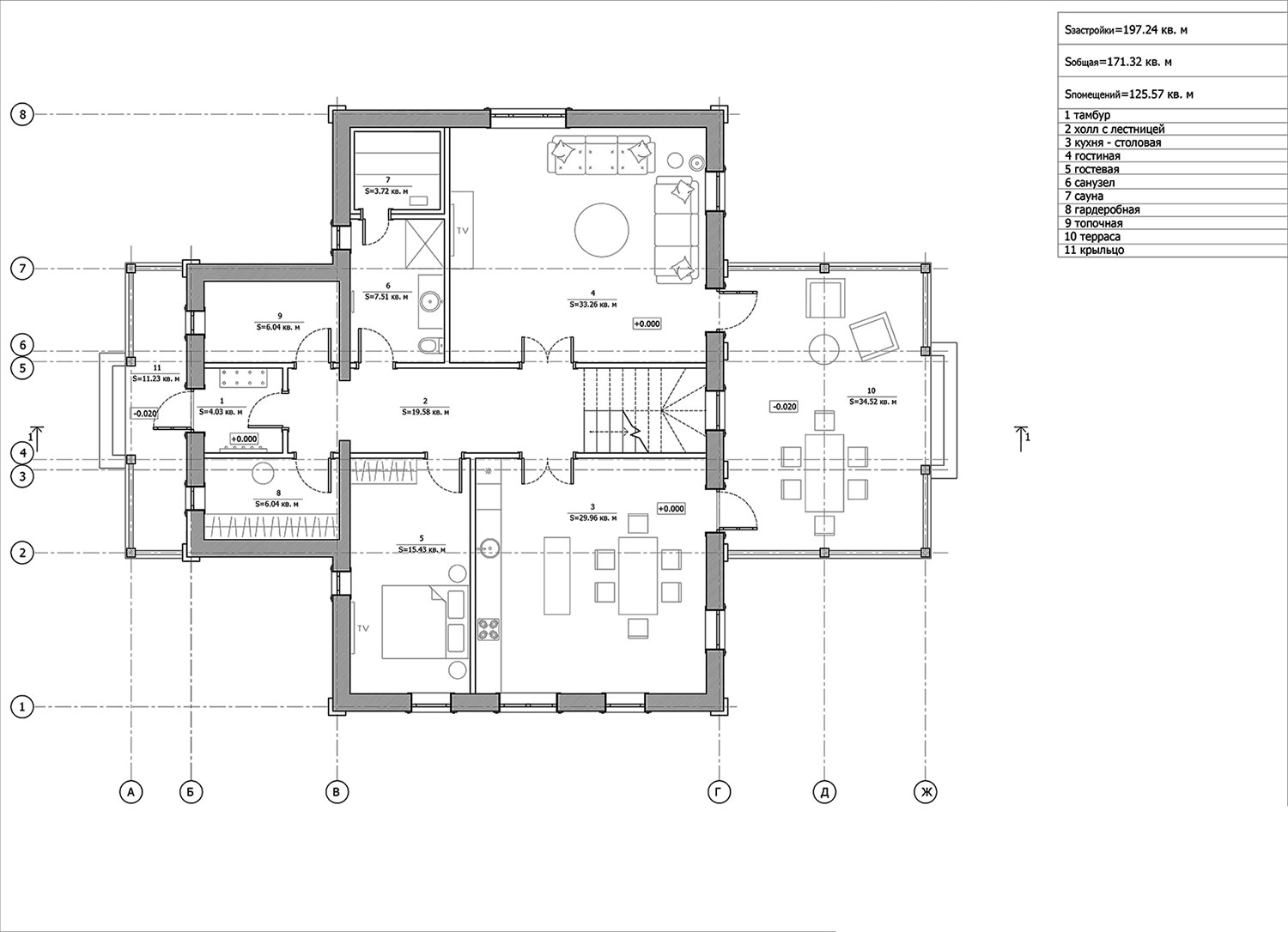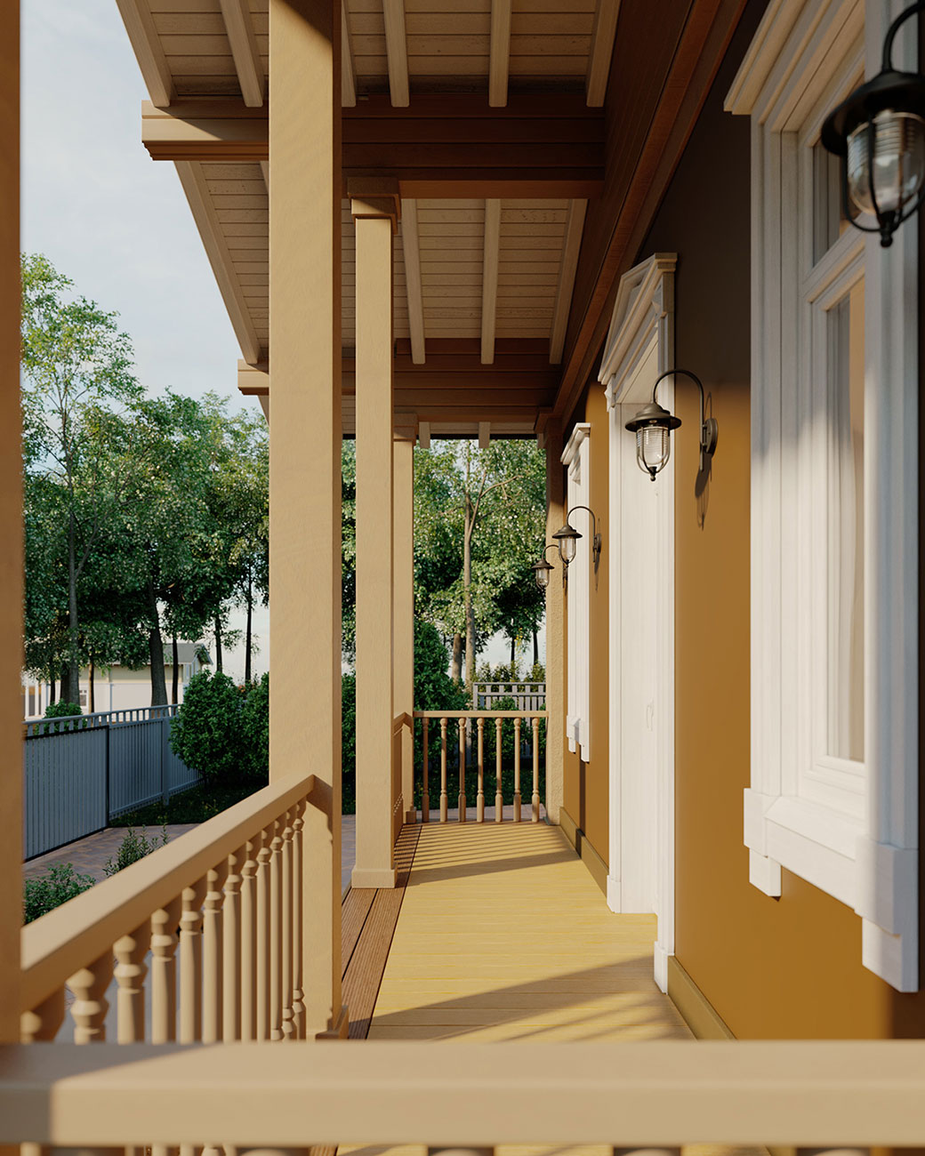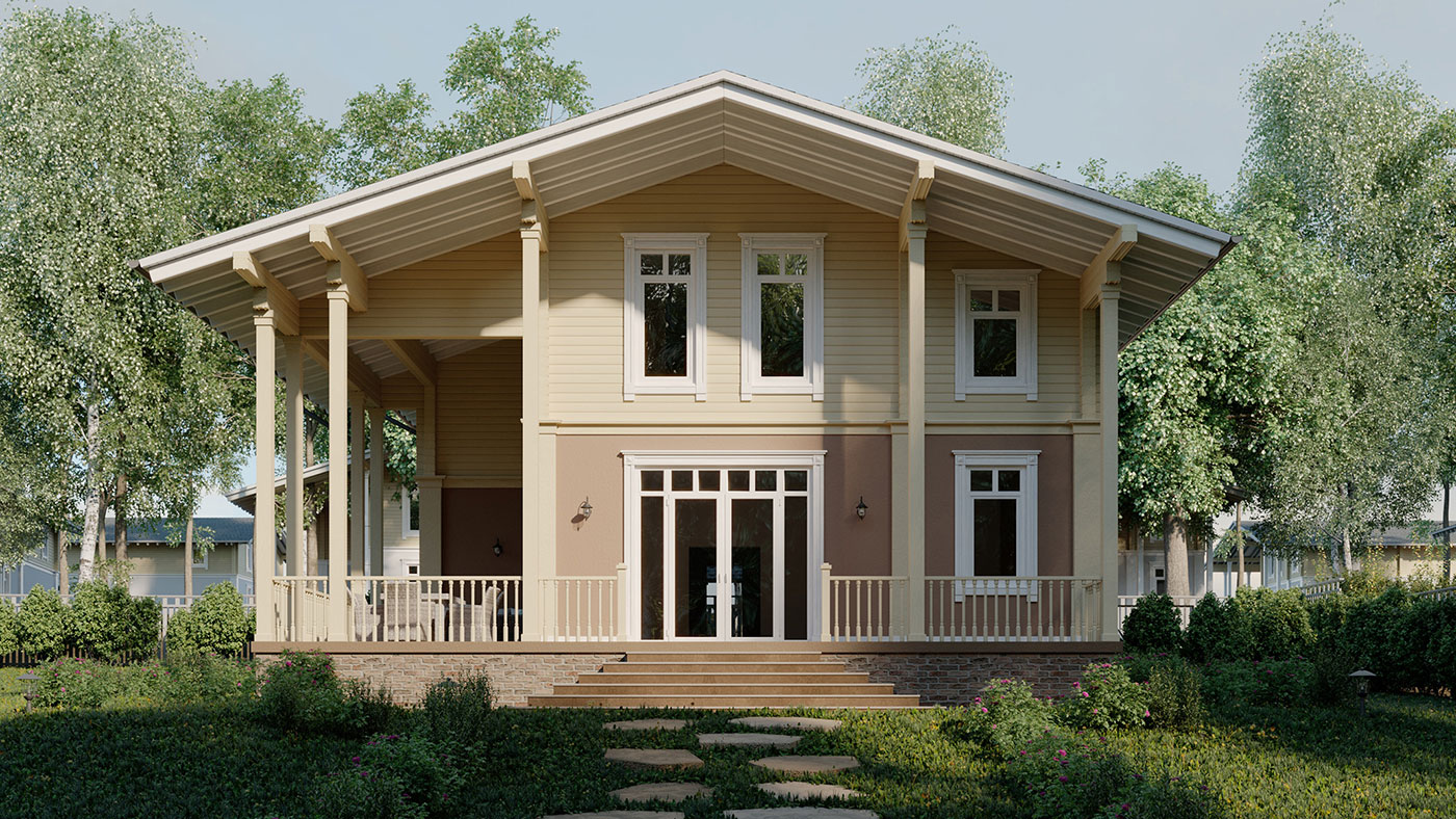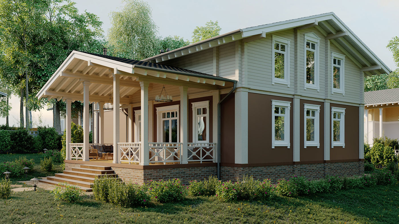 Все дома имеют каменный первый этаж и мансардный этаж из клееного бруса.