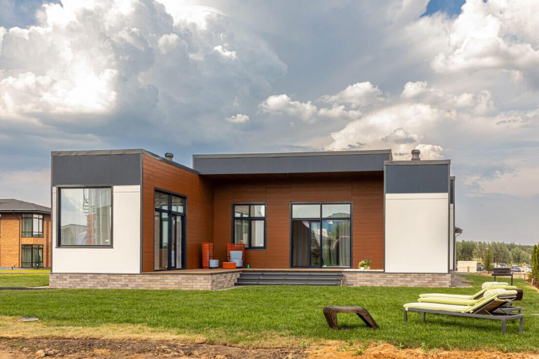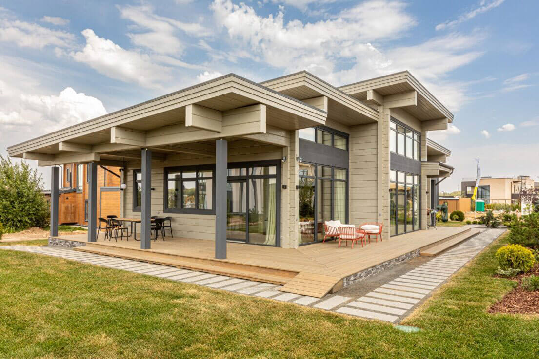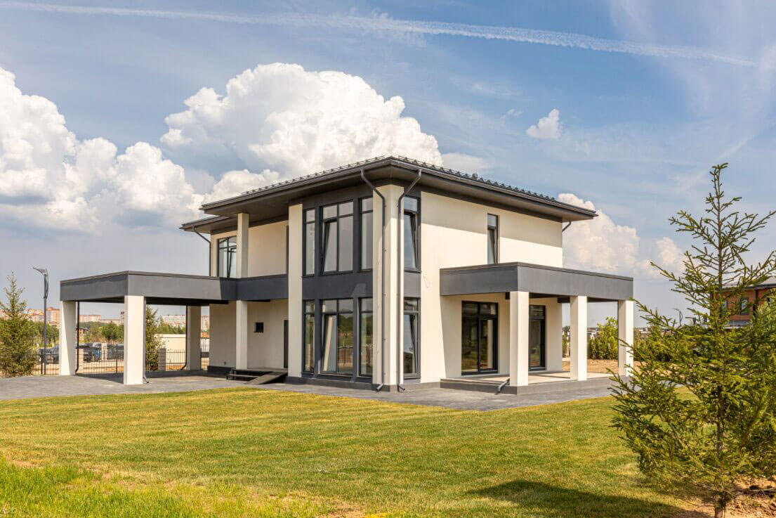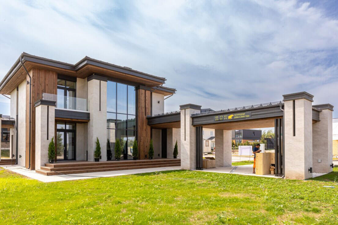 Коттеджный посёлок Open Village 2025 представляет собой современное архитектурное пространство, в котором гармонично сочетаются различные стилистические направления и материализация фасадов. Основу визуального облика формируют лаконичные объёмы с четкой геометрией, панорамное остекление и просторные террасы, создающие ощущение легкости и открытости. В облике поселка заметно доминирует современная трактовка крыши: используются как односкатные, так и объемные плоские кровли, подчеркивающие динамику силуэта застройки.