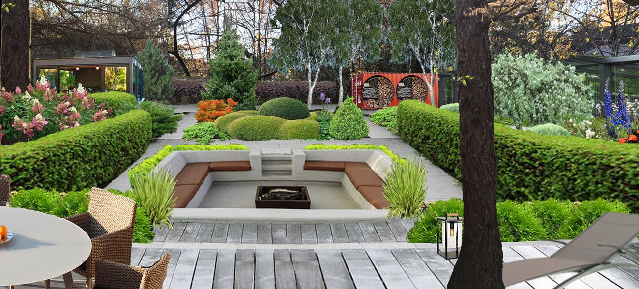Обозначив основные видовые точки, решили сделать в саду два композиционных центра.