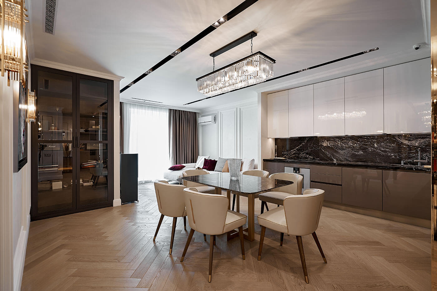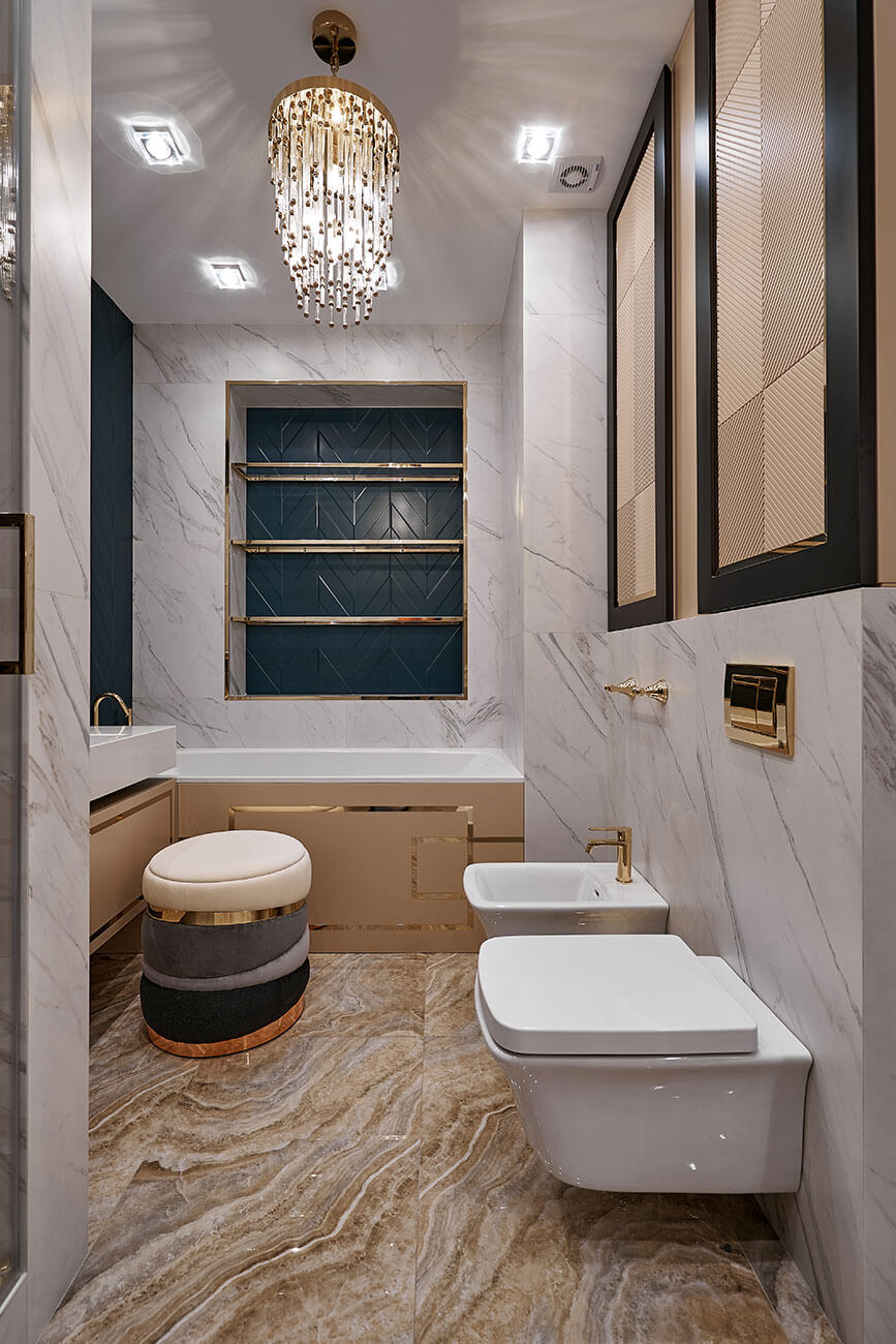 Мы в интерьер добавили золота и изысканности, конечно же, строго следуя предпочтениям заказчика и доверяя своему опыту.
