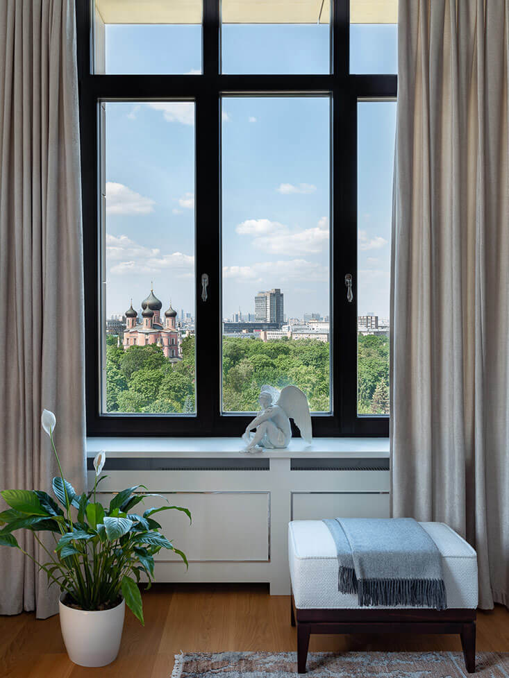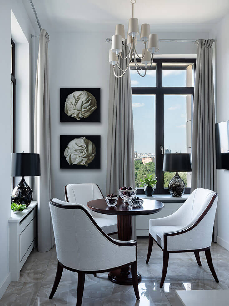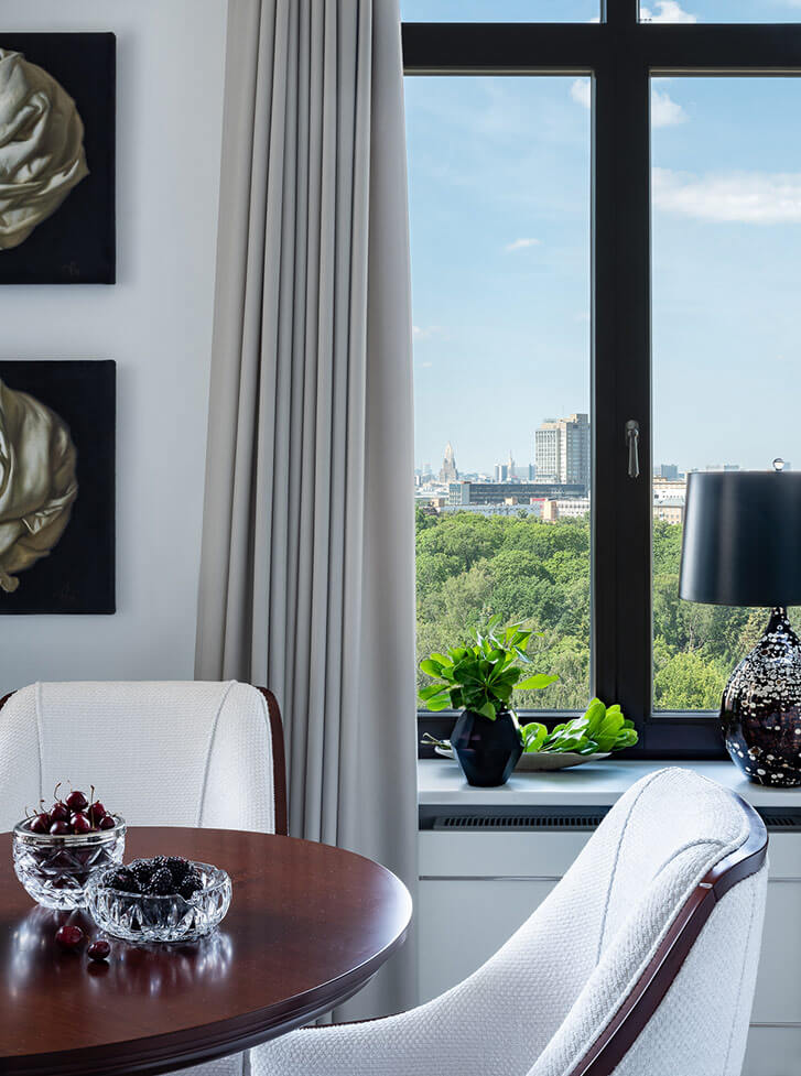 По общей задумке, интерьер должен был получиться похожим на дорогой номер в американской гостинице. У хозяина было несколько пожеланий, но прежде всего — светлый, спокойный интерьер, который можно изменять с помощью нового текстиля или акцентных деталей», — рассказывают дизайнеры Давид Сергеев и Дмитрий Якубов.