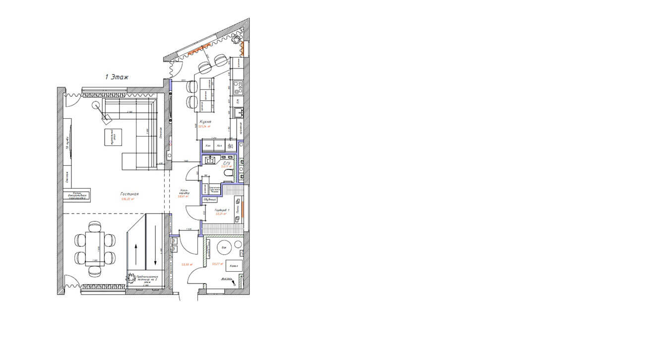 Гостиная-столовая — 56,2 кв.м