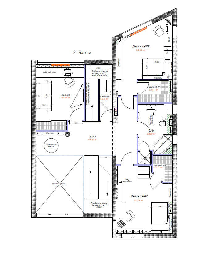 Площадь 2-го этажа — 87,8 кв.м