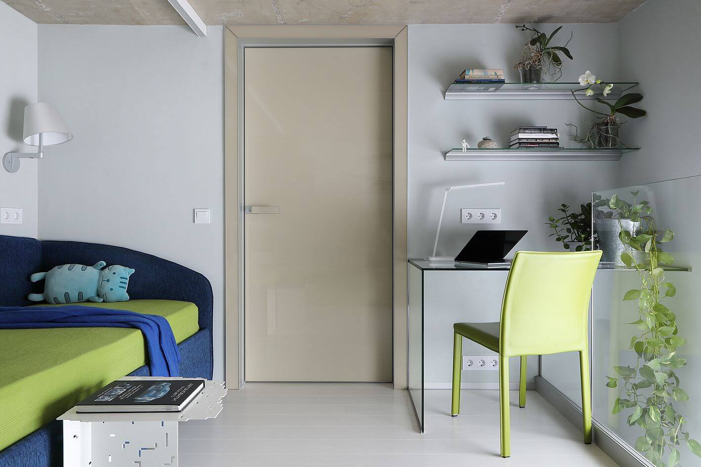 Удобный диванчик Bonaldo, забавное акцентное кресло Adrenalina и журнальный столик Medea.