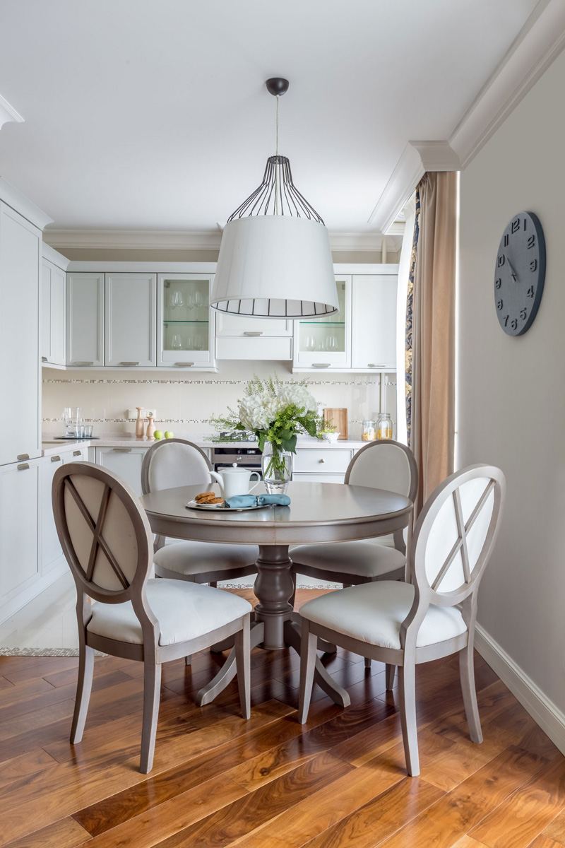 Так как владелицы квартиры любят готовить и ведут здоровый образ жизни, одним из пожеланий было соорудить большую удобную кухню, где каждой нашлось бы место. Наилучшим выбором стала кухня итальянской фабрики Aster — вкус и традиции южной страны идеально подошли к данному интерьеру.