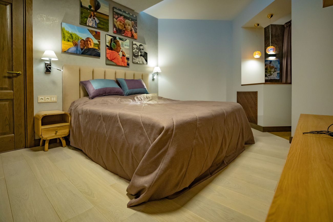 Для декора также использованы печать на деревянных досках и обработанные маслом портреты заказчика.